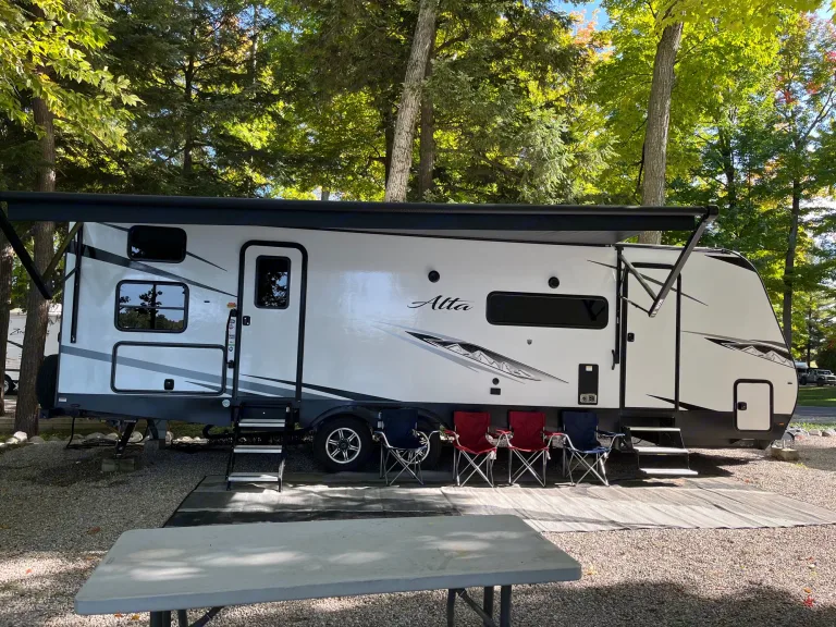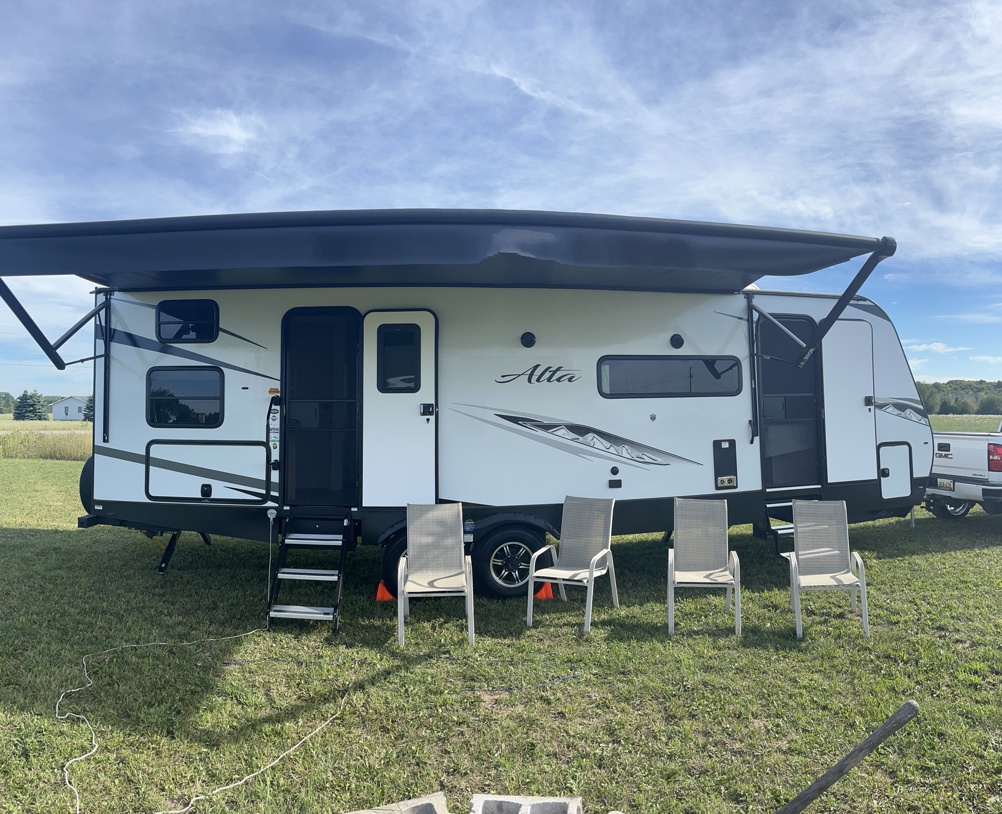 This is a 2022 East to west camper ready to be delivered for your next family vacation. This rental can come with camping chairs, bedding, linens and plastic ware. Everyone knows how hard it can be to leave the furry family behind, so this camper is in fact pet friendly. I can deliver within a 50 mile radius of Charlevoix which brings you to campsites in Boyne, Petoskey, Charlevoix, Traverse city and many more gorgeous camp sites.Might deliver further just ask!What's includedHere's some of the features this RV has to offer..