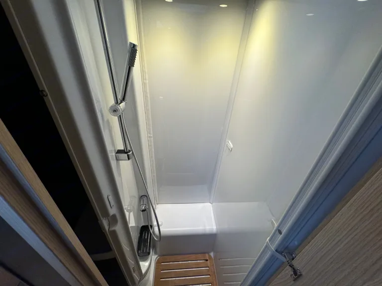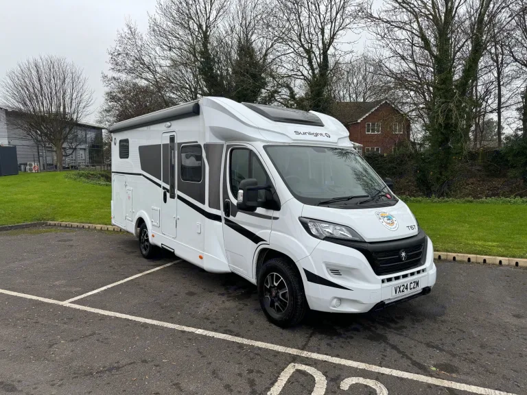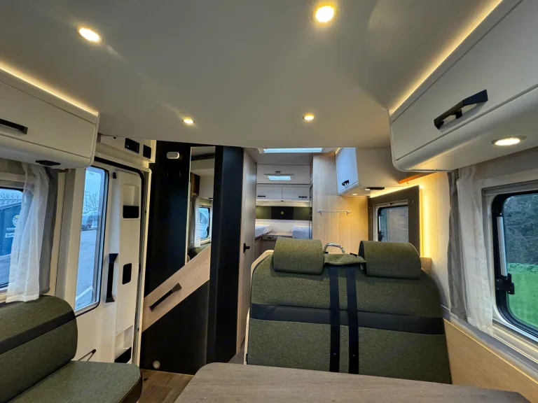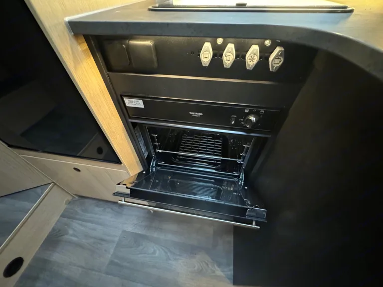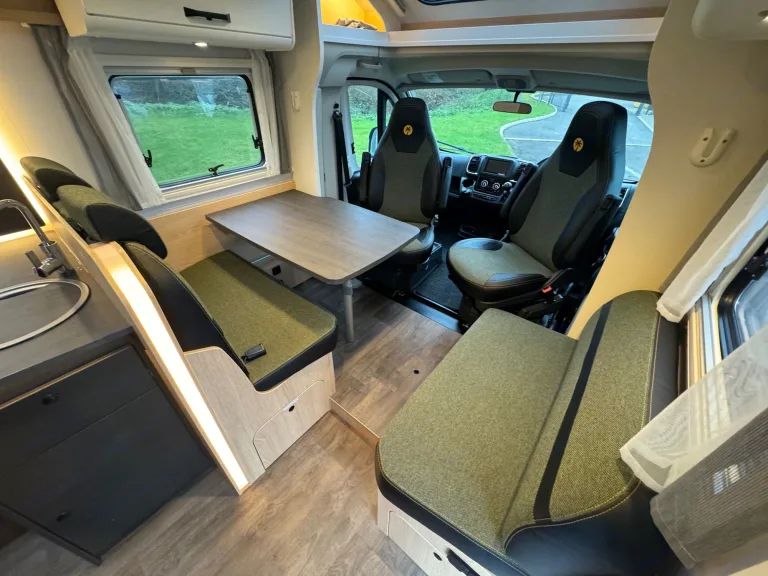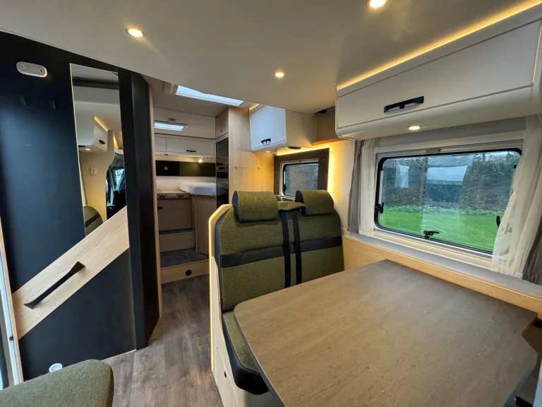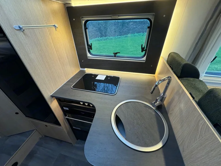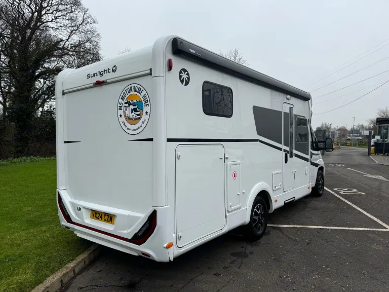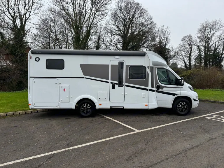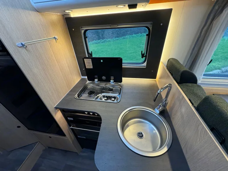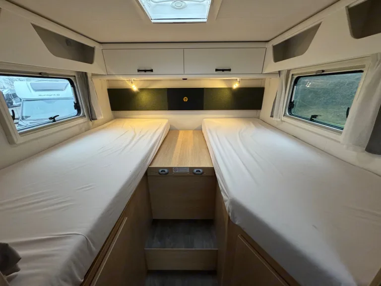 Sleeping ArrangementsFeaturing two single beds at the rear which can also be easily converted into a double, as well as a drop down bed in the living area. It also has a perfectly designed bathroom with toilet and separate shower room.Living SpaceThe L-shaped kitchen has a large fridge & separate freezer as well as a full oven/ grill for preparing meals. The main living / dining area also benefits from being separate from the main bedroom at the back giving extra privacy. The seating area is spacious and is a great place to unwind at the end of the day.Utility StorageThere is lots of overhead storage throughout the home as well as a large garage at the rear for larger items and outdoor gear.