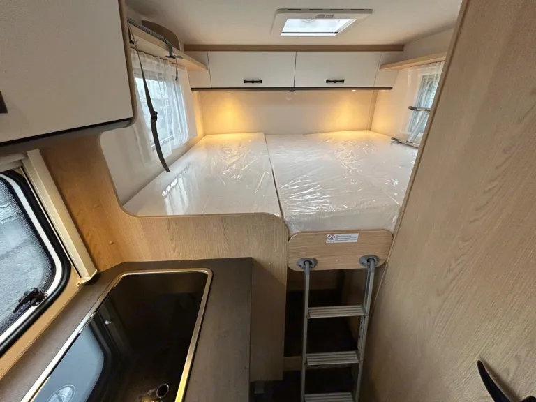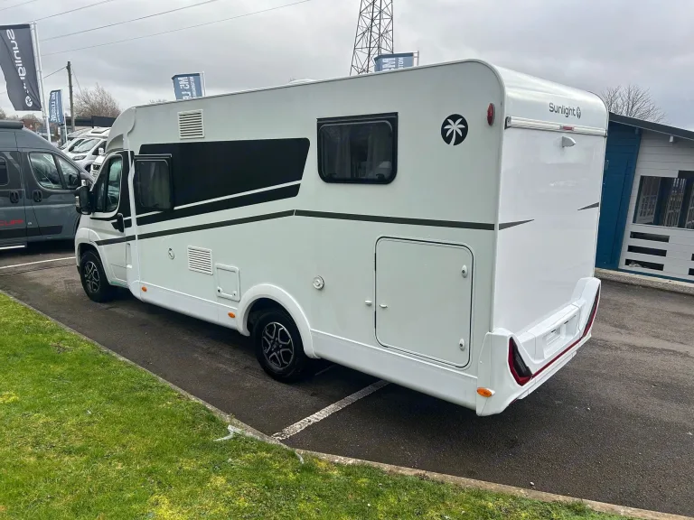 The Sunlight V67S is a sleek, modern motorhome that combines a compact 6.65 m length with impressive interior space. Featuring two large single beds in the rear that can convert into a huge double, plus an additional lateral pull down single bed above the stylish living area and fully equipped kitchen, the V67S offers a premium travel experience without the bulk of a large motorhome.Whether you’re exploring the coast, heading into the mountains, or touring Europe, the V66 delivers comfort, drivability, and flexibility in one smart package.Key FeaturesSleeps 2–3