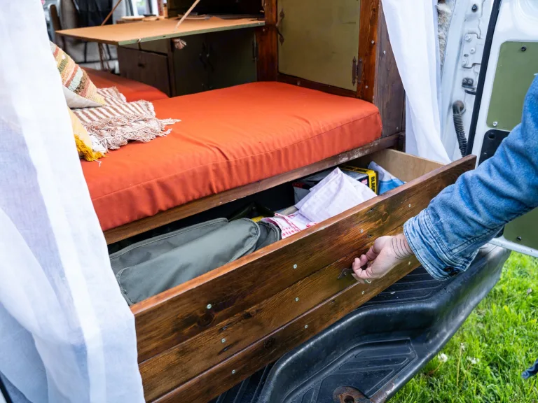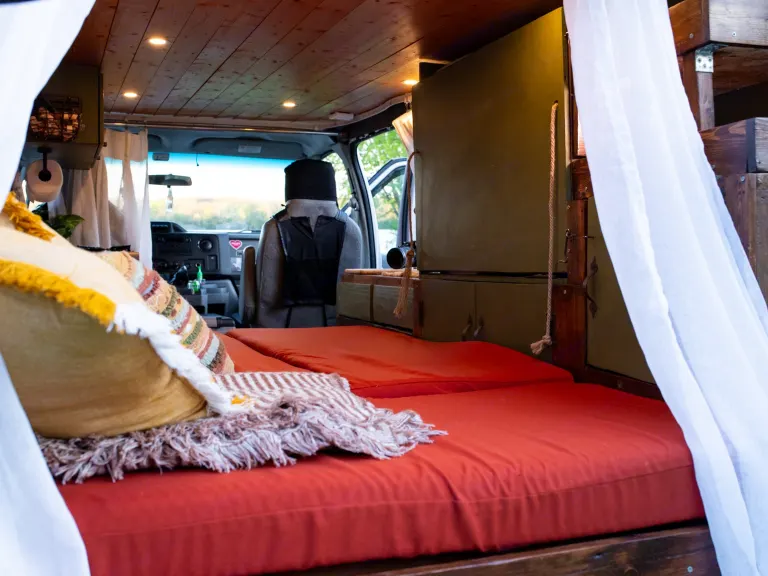Fully equipped for off-grid camping, our van gives you the freedom to skip crowded campgrounds and wake up surrounded by nature.This compact yet cleverly designed van features:- a spacious and comfortable bed