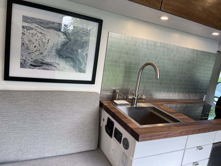 This is a 2019 Newly Custom Built Ram ProMaster 2500 Outfitted by Professional Van Builders.Fully equipped with a full-sized 8” Zinus cooling gel comfort foam mattress bed, composting toilet, outdoor shower, deep sink with a dual handle faucet for filtered drinking water, double induction cooktop for preparing your favorite meals, 80L fridge with a small freezer, roast a chicken in the convection oven microwave or bake a pizza, cookies or just some popcorn. Ventilation, A/C and heater. Tons of overhead storage and drawers for all your belongings and more room in the garage for extra gear.This Camper Van is jam-packed with High-End Components: (3)5000 Watt/Hours Tesla Batteries, 3000 Watt Inverter, 510 Watts of Solar Panels, 220V Upgraded Alternator, 9000BTU Ultra quiet Houghton A/C unit, 2000BTU Webasto Heater and a WeBoost Drive Reach Phone Cell booster. There are (4)AC Outlets & (2) 4 port USB Outlets. Walnut upper cabinets fronts, countertop, dining table and Engineered Harwood floors throughout. There is a Waterdrop 3 Stage Filtration system and 21 gallons of single filtered water on board. 24 gallon gas tank getting you 18 MPG. The awning is currently inoperative and has been substituted with a pop up screened enclosure with dual access.What's includedWHAT YOU NEED TO BRING: Your Clothes, Sleeping Pillows, Toiletries, your Favorite Foods and Drinks!It will come fully equipped with all induction cookware, utensils, silverware and dinnerware for 4. (4)Various sized Mixing bowls, (4)Food Category Cutting boards, (3)Various sized Chef knives, (2)16 ounce Coffee mugs, (1)Zojirushi Zutto 5 cup coffee maker and a NutriBullet with (1)18ounce cup and (1)24ounce cup.There will be cabinet and drawer cubbies for easier organizing. Fresh white linen sheets, (2)pillows and (2)Turkish bath towels-quick drying (2) Extra-large comfy camping chairs, side table and an outdoor area rug w/ stakes.RecommendationsLots of Places to Explore:Starved Rock, Matthiessen State Park, Chain O Lakes State Park, Shabonna State Park- here in Illinois.Waco Beach, Warren Dunes, Picture Rock, Beaver Island-all in Michigan.Indiana Dunes, Prophetstown State Park-Indiana.Peninsula State Park, Devils Head State Park, The Dells- in Wisconsin.Key West is always an Amazing Spot too.🌴🌊🐬😉Other things to notePLEASE NO SHOES InsideNO SMOKING, VAPING OR DRUG USE OF ANY KIND insideNO DOGSNO FESTIVALSNO OFF-ROADINGNO TOWINGThe van has GPS tracking for both your safety and our protection. Do Not exceed 70 MPH speed limit, first offense is free, but any subsequent offenses will be $25 per offense.