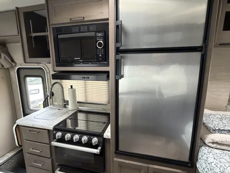 Welcome to our beautiful RV. It is fully stocked/equipped and ready for your next adventure!Our RV features 2 full size beds with mattress toppers for extra comfort. 1 queen/full bed is located over the cab and the other full bed is in the back area. The dinette turns into a twin size. Bedding, pillows and blankets are included for all beds. Our RV sleeps up to 5 people comfortable.Easy to use electric awning with LED lights, usb charging ports and 1 TVThe kitchen has a stove top, oven, microwave, fridge and freezer, and a sink with countertop.The bathroom area is spacious and is supplied with hand soap, hand sanitizer, holding tanks deodorizer, gloves, cleaning supplies, and RV toilet paper.The RV has lots of storage inside and out.