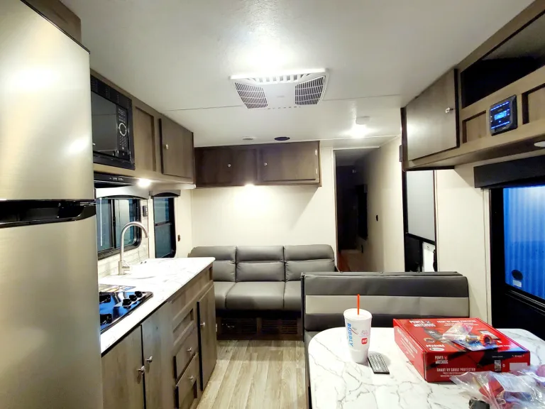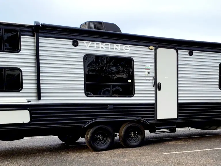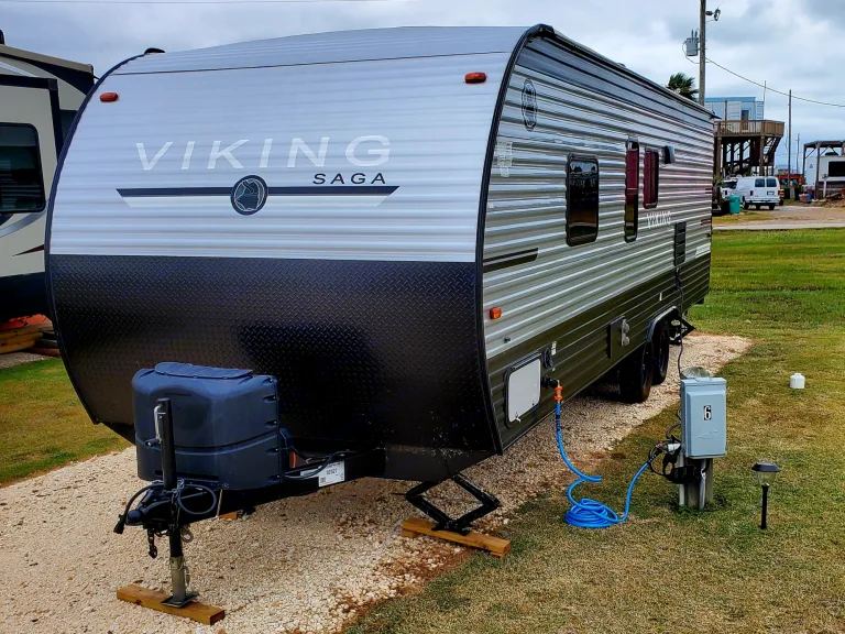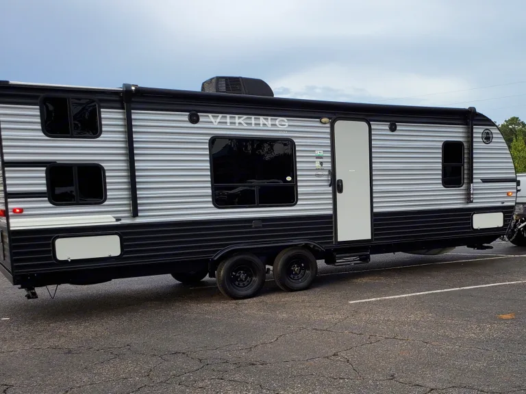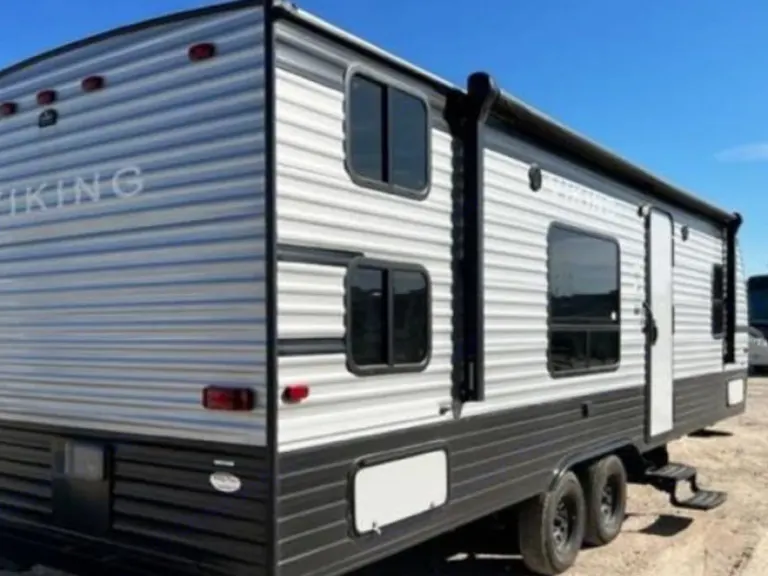 2020 Viking Saga 26ft Travel Trailer - Extremely clean, non-smoker, TV, blue-tooth radio, microwave, sleeps 6-8, private master bedroom. Generator available for additional charge. Small pets allowed with additional deposit. Bunk beds are spacious, the refrigerator has plenty of space and freezer, there is also an outside shower. What's includedFresh sheets, full propane tanks, blue tooth radio, tv, microwave, moderate size fridge, and some cooking utensils.RecommendationsCall to review details about any necessities that may be needed.Other things to noteNo smoking, only small pets with additional deposit, and must be pulled with full size truck.