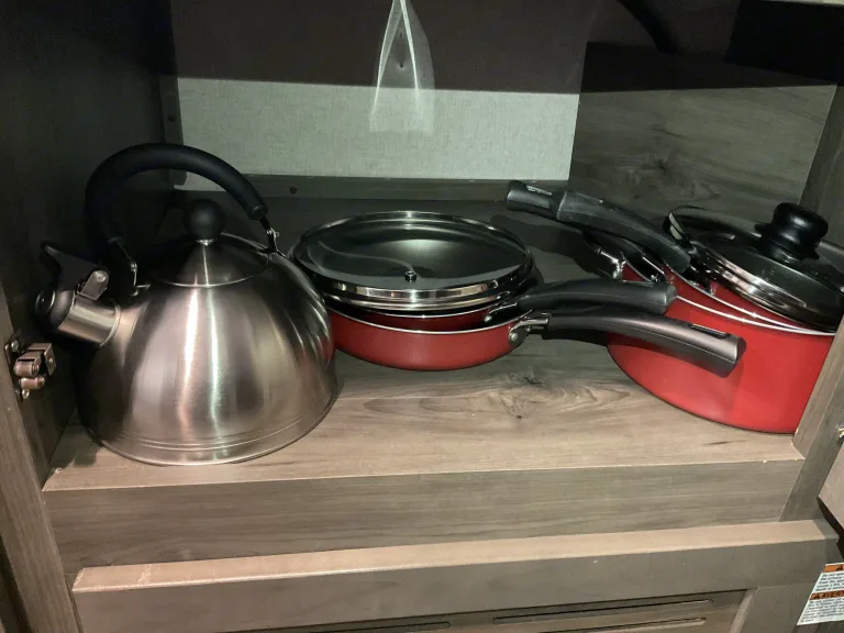 Generator. Fresh linens, blankets and pillows provided including the dinette bedding which is located in a plastic container under the queen bed. 5x Towels, 2x hand towels and 5x wash clothes are located in the bathroom along with hand soap, 2x toilet paper and 2 trash bags provided for the trash cans. Tableware, flatware, coffee mugs, (5x serving set) cookware, cooking utensils, knives, cutting board, 2x dish rag and 2x towels, 3x pot holders, kitchen and bathroom garbage cans with 2 bags provided, dish soap, hand soap, paper towels, foil and a striker to light the stove top. 5x camp chairs, 13” TV, Bluetooth Stereo, LED Lit awning.