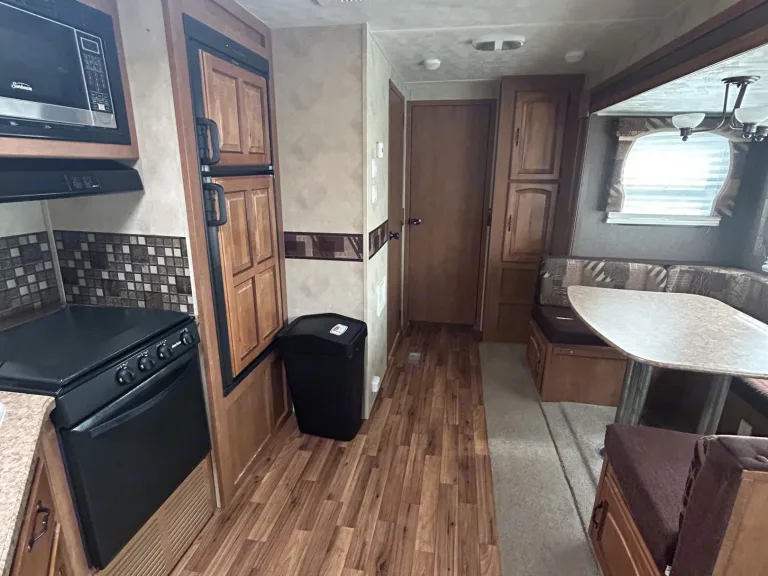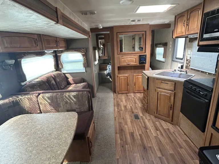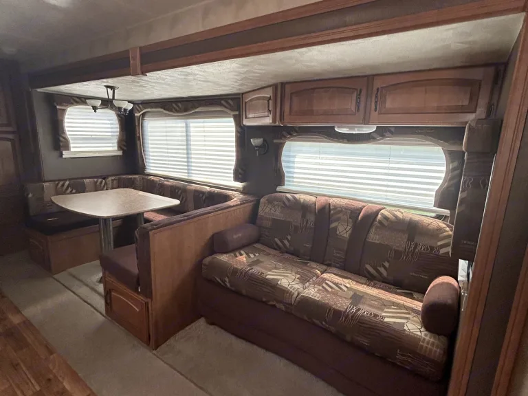 We have a 2012 Forest River Puma by Palomino travel trailer with an awning to enjoy camping days and nights away. It is fully equipped with kitchen, bathroom, Queen bed, sofa, tables, 4 bunk beds with very large movie play room for kids. The camper has 2 TV for some movie time during your camping trip to enjoy when needed. The camper is quite large and spacious in nature inside to truly enjoy the camping season. Our camper is fully furnished with all the linens, pillows, towels, cooking ustensils, pots and pans needed for enjoying a camping vacation. It has a very large awning outside for use if raining or to simply have some sun shelter.What's includedOur camper is fully furnished with all the linens, pillows, towels, cooking ustensils, pots and pans needed for enjoying a camping vacation.