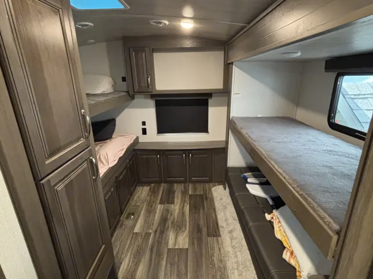 2023 Keystone Cougar Luxury bunkhouse! Includes auto leveling, fireplace, outdoor kitchen and all the space needed for a large family! Our luxury camper is stocked and ready for your next adventure. Camping chairs and kitchen utensils included