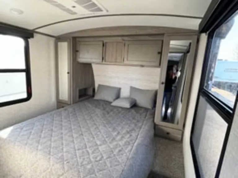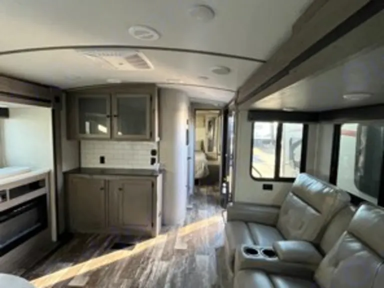 Like New 2021 Keystone Outback with island kitchen. Sleeps up to 6. Featuring a custom, professional conversion fully equipped with a queen-sized bed, two sinks, full bath with shower, Jackery with solar panels, microwaves, full island kitchen, pop up 55 inch TV, electric and sewage plug ins with 2 type of plug in amps. Tons of storage space underneath for all of your adventure gear! This trailer is perfect for you ultimate road trip.