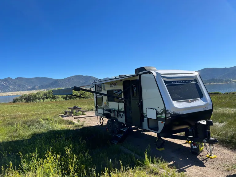 ---Trailer weight is 4720lbs dry, fresh water tank is 30gal which ads 250lbs(8.4lbs/gal). Max weight capacity of this trailer with water and all gear is 7668lbs. We average around 5200lbs total trailer weight being towed when we hit the road with gear and water, your weight will vary based on what you bring with you. There are numerous mid-size and full-size SUVs that are capable of towing this, or of course a truck. We will ask you about your tow vehicle prior to approving rental to ensure your's and other's on the road's safety and as well as the safety of our rig. We suggest you verify your vehicle's towing capacity with any trailer you rent.What's includedFresh Linens on both bunk beds and queen bed. 8 cups and plates, frying pan, cooking pot and cooking utensils.RecommendationsGet out and see the numerous state parks that Colorado has to offer. Camping spaces can be tough to find, though with some persistence and checking back on the parks website, there are usually “basic” camping spots to be found. One of our favorites is 11 Mile Reservoir, which has spaces that allow you to park basically waterfront, no hookups though, generator needed.