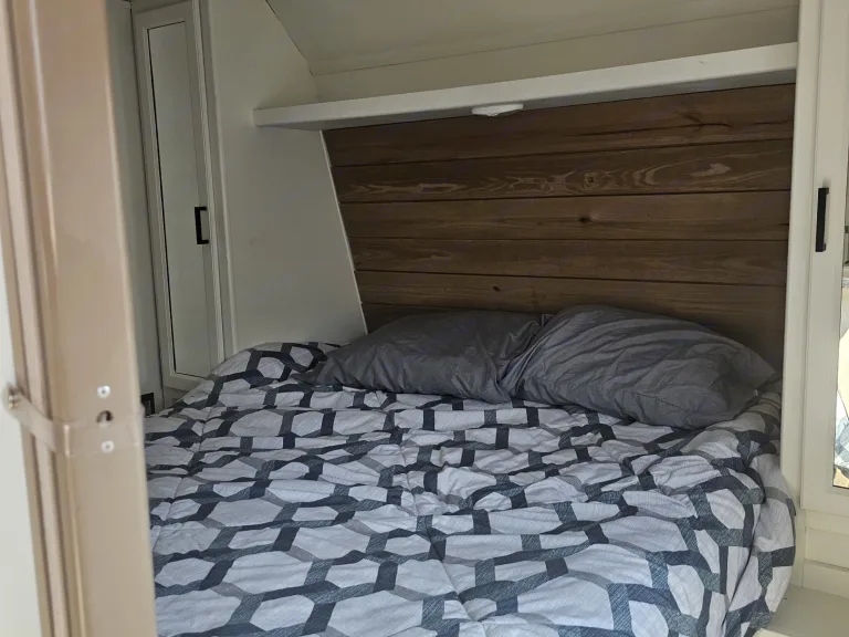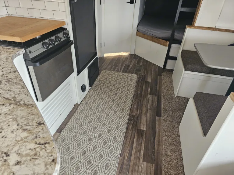 Light weight great family unit ! sleeps the whole family with a queen bed and double size bunk beds. Full bath room and a roomy family area with kitchen , love seat and dinning area .