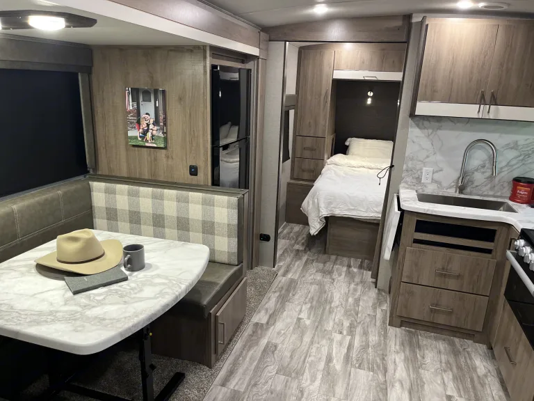 Enjoy THE Freedom OF Camping IN Comfort With THE Latest AmenitiesThis beautifully designed bunkhouse is spacious & airy with plenty of room for the family. No matter what season, you’ll be comfortable in this well made, brand new Grand Design camper. It comes fully stocked to make packing for your trip easy. We’ve included an extensive list of have-to-have items so you can focus on the fun.No matter how long you're out on the road, you’ll feel pampered while enjoying the outdoors at your favorite campsite or boondocking. The ease of high tech & high end living in the wilderness has a way of growing on you.At 5725 lbs (7495 Gvwr) it’s easy to pull & at 29’ length & 11’ tall, you’ll have access to most campsites. The Imagine Series is designed to fit the Medium Duty Truck/SUV ‘Sweet Spot’ & is known for it's quality and innovation.This camper features: