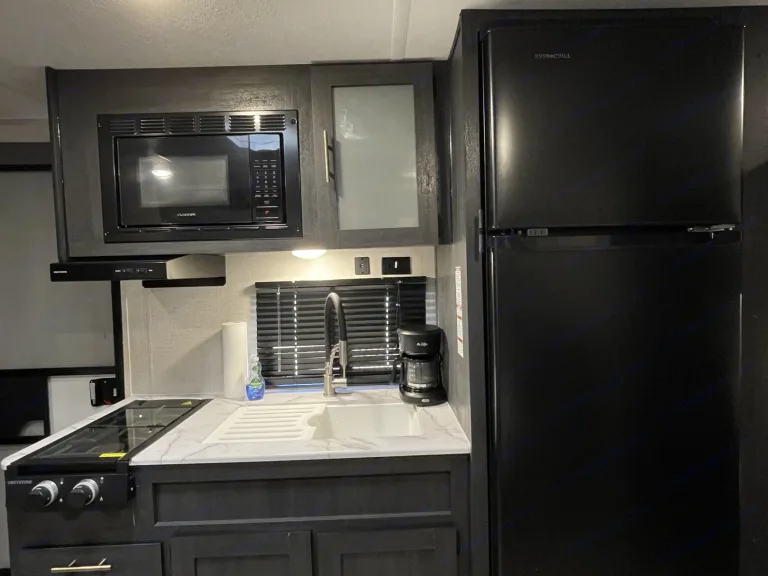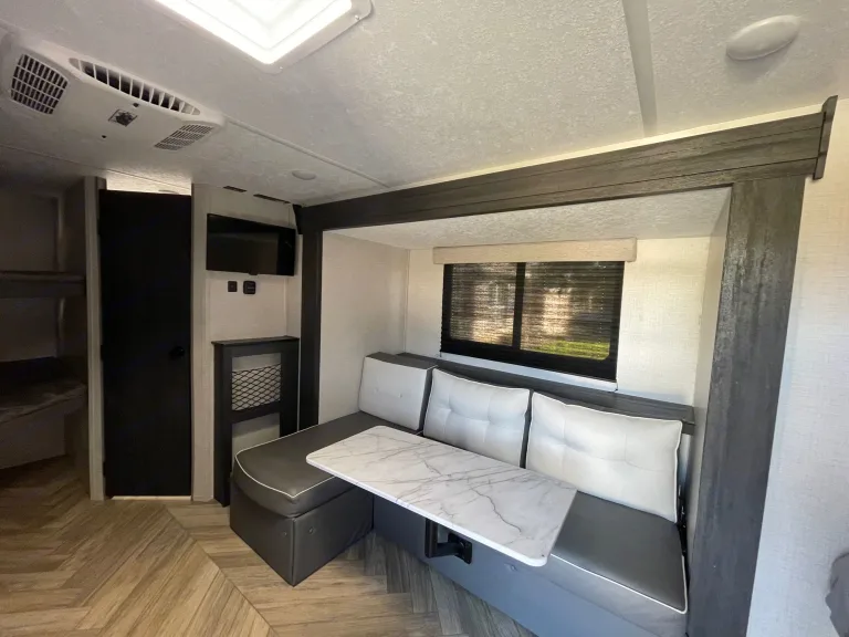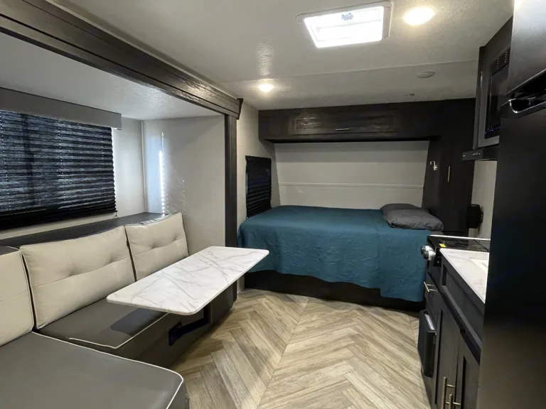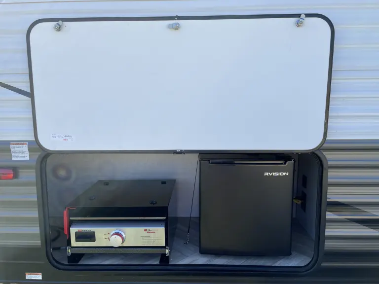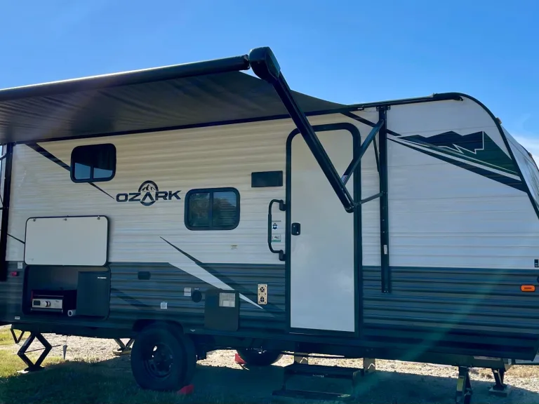 **Flexible with pick up/drop off times** Brand new 2022 Forest River Ozark that sleeps up to 7! Lightweight - can be towed with larger SUVs and small trucks. The master queen bed is upgraded to a memory foam mattress with bedding provided for a good nights rest. It comes fully stocked with basic kitchen utensils including coffee pot and full sized fridge and large sink. All the fun is outside though, with a 14ft awning, outdoor kitchen, shower and portable speaker. We’ve provided 4 fold out chairs and an outdoor rug to keep it cozy. Camper is cleaned/disinfected after every use! We deliver near Lake Conroe area upon request. What's includedFresh linens, basic kitchen utensils, coffee pot with mugs, camping chairs (4), corn hole, outdoor rug and all hookups. Other things to noteAbsolutely NO smoking!