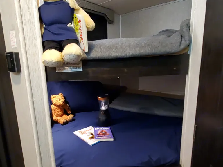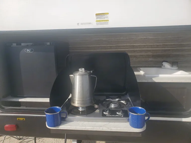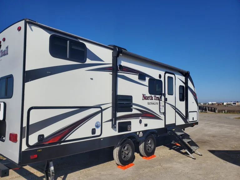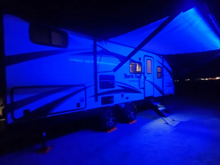 Comfortably Sleeps 6! Welcome to your "Dulce Aventura". Ready and fully equipped 2018 North Trail lite weight travel trailer. Easy to tow with a half-ton pickup. Make the most out of your vacation with Queen size bed and double bunks for full comfort. Full kitchen with gas stove and oven, toaster, microwave and refrigerator. Plenty of storage for snacks and food. Pantry is stocked with bowls, plates, pots and pans. Not ready to be inside? Outdoor Kitchen available with mini fridge and sink, along with Outdoor shower equipped with cold and hot water! Plenty of storage available inside and outside. Outside storage will have 4 outdoor chairs, outdoor mat and all the hookups you will need including outdoor surge protector and 50 to 30AMP adapter. Leveling blocks, level and basic tools to park RV also included. Outdoor Awning with lights to keep the party going. Link your phone to the radio and choose your Tunes to listen inside and/or on outside speakers or Link to TV to watch your favorite movie. What's includedLines for bed and Bunks, 8 pillows