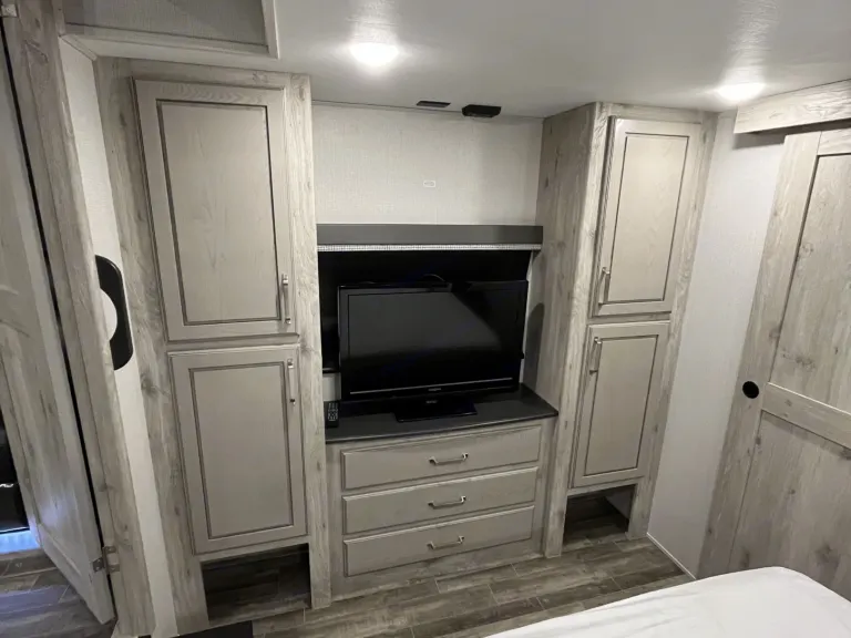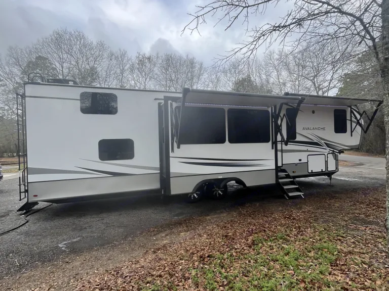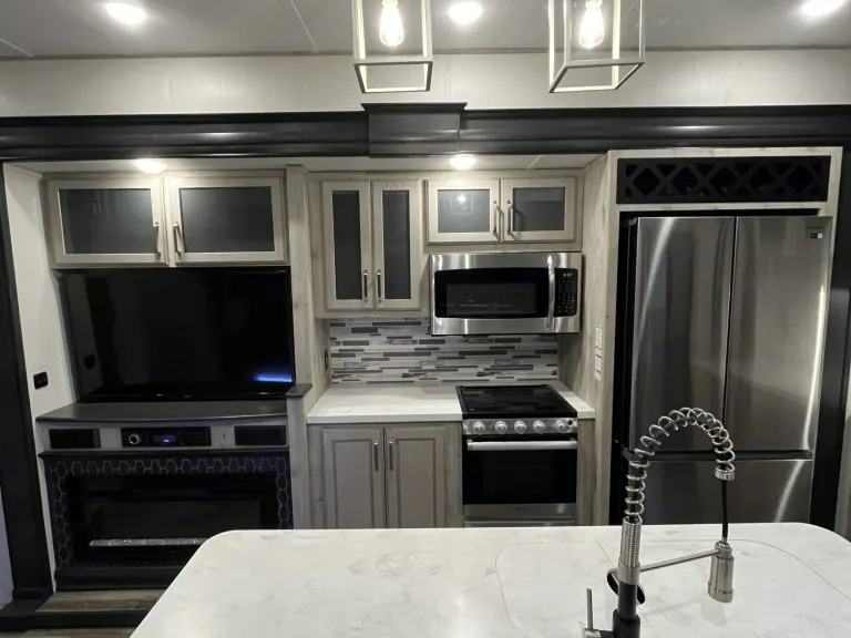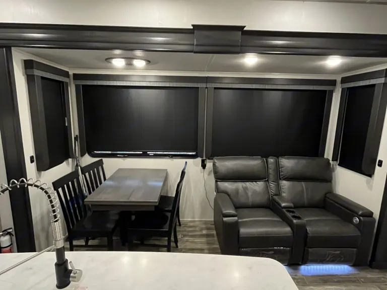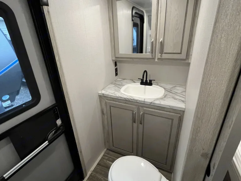 This 5th wheel is built with comfort and fun for the whole family on a camping adventure. With two full baths this offers peace at night and quiet when you are trying to rest.