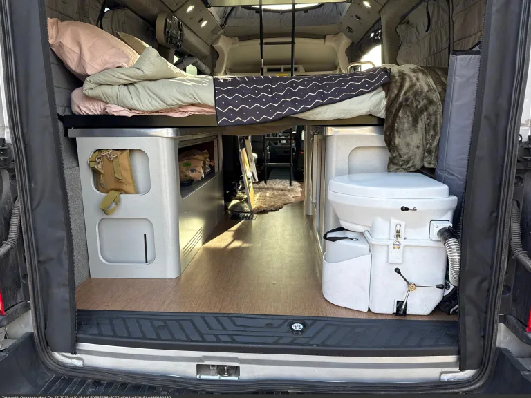 Electrical: turn both red nobs for the solar and electrical system to on and then you can flip on anything you would like to use on the main panel which is clearly labeled. The water tank is located in the back drivers side bench storage. It will be filled with 25 gallons. We can provide a hose for additional water to add. Water drains from under the van, so no manual emptying. It’s a composting toilet, so no grey or black water tanks either. 1 Shore cords available