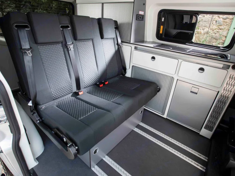 Pour ceux qui souhaitent partir jusqu'à 5 avec un grand espace de vie intérieur et un max de rangements, le Panama est fait pour vous ! Cuisine, frigo, douche extérieure, auvent, chauffage, et panneau solaire !