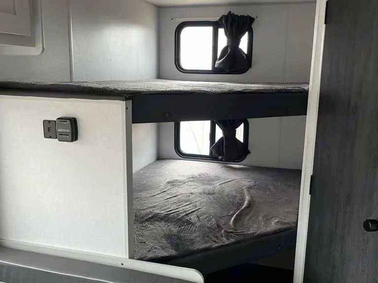 Lots of features with not a lot of weight to tow! Queen sized bed with memory foam that can turn into a sofa for some TV time. Dinette that can turn into a bed and two full size bunk beds that can be used to sleep or storage. Comfortable bathroom with flushing toilet and shower. Kitchen has great storage, sink, two burner stove and large fridge. Outside storage contains a portable grill, propane stove and griddle plate. Collapsible outdoor kitchen and all the cooking tools needed. Yard sized games to keep you entertained. What's includedFresh linens, towels, cooking gear, utensils and plates. Games, outdoor rug, outdoor stove, pots and pans, paper towels and toilet paper. RecommendationsExplore all the great scenery New England has to offer. Maine is beautiful. Other things to noteLet’s welcome!