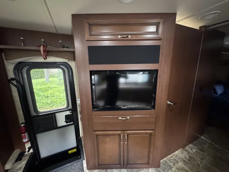 Looking for a cozy place to camp out? Check out this camper! It has a full kitchen that is separated from the dining and living room, as well as a king-size bed. With nine seat belts, it's perfect for group outings. If you need an e-scooter, ask. We want to make your experience as easy as possible, so all you need to bring are your clothes, food, and personal items. We'll guide you through the setup and breakdown process. The kitchen is fully stocked, and bedding is provided for all three beds. Plus, there's a Blackstone flat-top grill for your use.What's included You will have access to two TVs equipped with Apple TVs, allowing you to explore endless entertainment options, including Prime Video and Peramont+. You only need to hook up to your campsite's WiFi or your personal Hotspot for seamless service. For the ultimate grilling experience, we've included a Blackstone Grill and 20 pounds of propane so you can cook up a storm and enjoy some delicious food. Prepare for an unforgettable vacation or event with amazing entertainment and mouth-watering food.