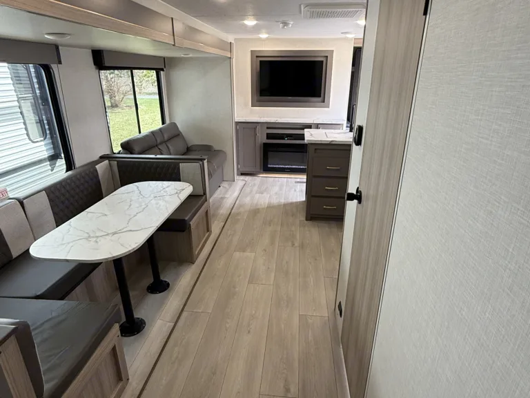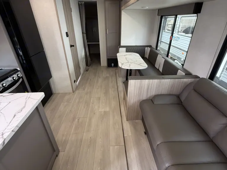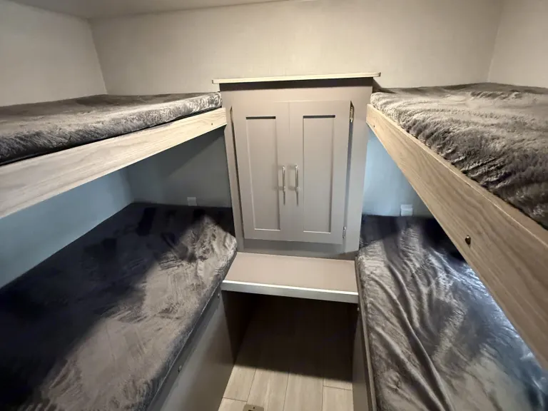 RV rental with four cozy bunk beds and central storage, ideal for family camping trips. Comfortable and functional interior.. KZ Sportsmen SE 2025