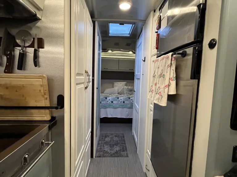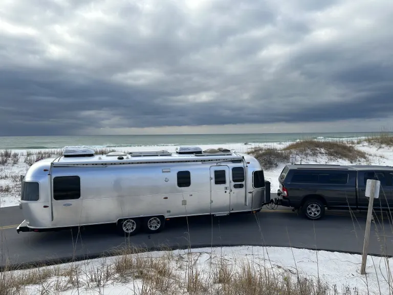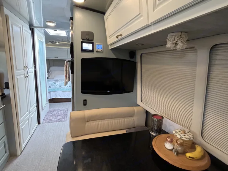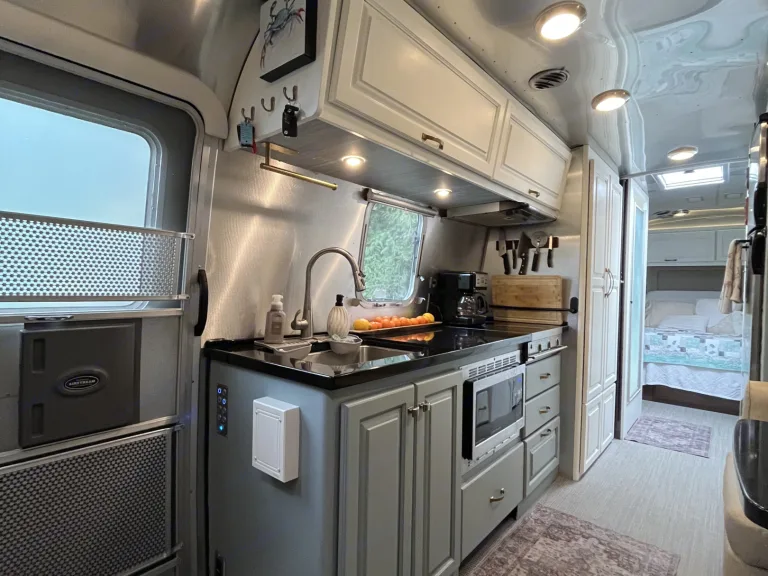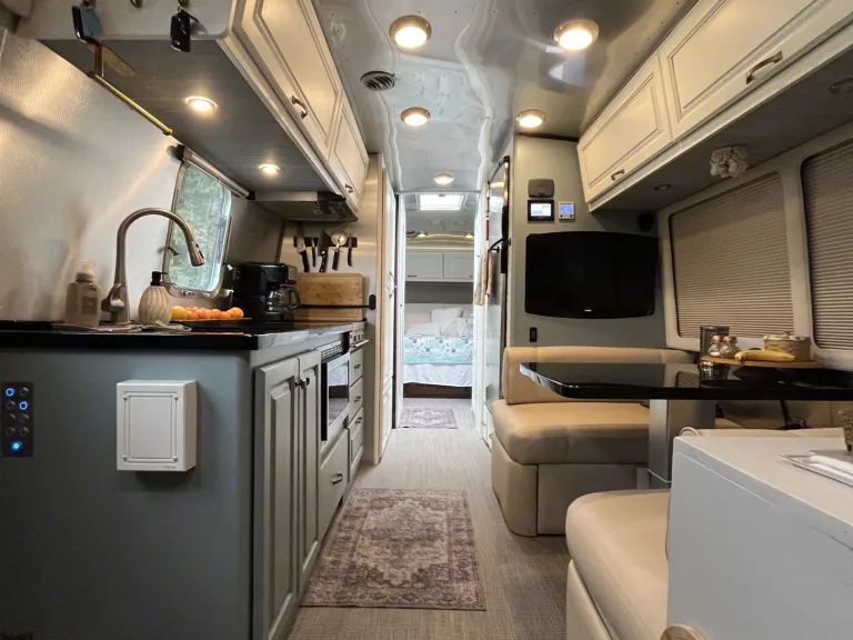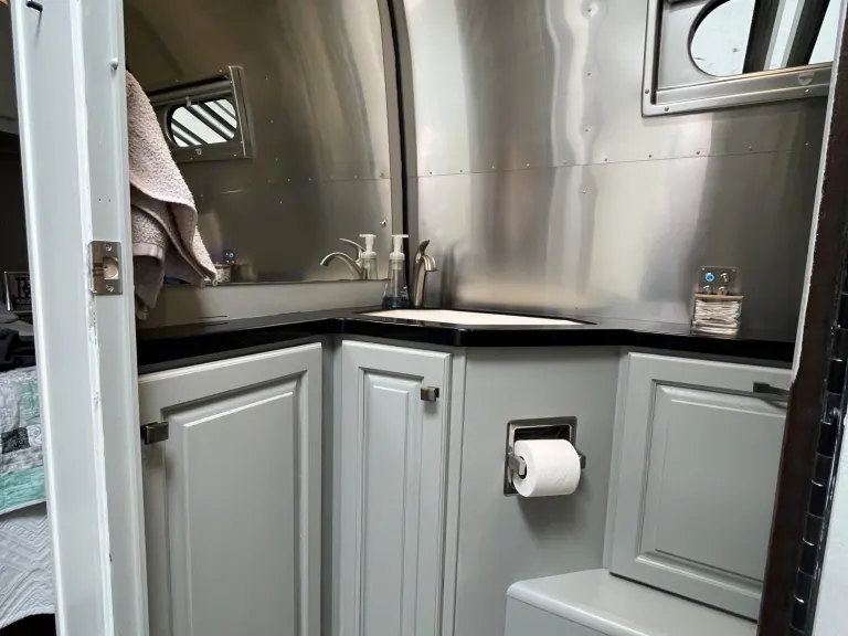 Queen rear bedroom with premium mattress, storage, and panoramic windows for those sunrise views.Fully equipped kitchen with convection oven, gas stove, microwave, refrigerator, and plenty of counter space.Spacious living area with automatic recliners, smart TV, and surround sound — the perfect place to relax after a day outdoors.Full bathroom with shower, vanity, and ample storage.Smart climate control system and Airstream’s Classic Control touchscreen to manage lighting, awnings, and temperature with ease.Outside PerksPower awning with LED lights — great for evening lounging.Outdoor chairsStarlink internet for added fee of 75$Why You’ll Love ItThis isn’t your average RV — it’s a luxury home on wheels with that iconic Airstream charm. Perfect for couples or solo travelers.Whether you’re parking lakeside, heading to a National Park, or just need a peaceful retreat, our Airstream makes every spot feel special.What's included• The kitchen is stocked with everything you need as far as cooking utensils.