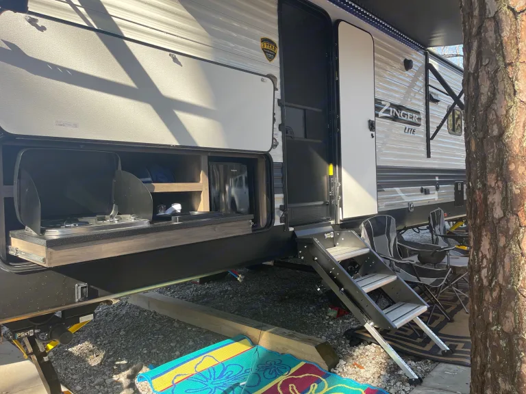 This Zinger Lite travel trailer has everything you're looking for to start your next big adventure. With room to sleep 6-8, you can be sure to have an unforgettable time with friends and family. The kids will love the ladder that leads to the bunk beds, and this unit features a front bedroom with an RV queen bed and two shirt closets for your clothes. Enjoy playing games around the U-shaped dinette or kick back on the sofa with a friend. Since this unit includes a large slide, you can enjoy extra space to move around freely. You'll love the kitchen with a refrigerator, generous counter space, and a pantry for late-night snacks, plus a bonus outdoor kitchen!The CrossRoads Zinger Lite travel trailer has been engineered and carefully designed for an easy transition into the CrossRoads family! These trailers are light enough that you don't feel burdened down while traveling, but they are filled with plenty of standard features to make each trip enjoyable. You will find an AM/FM stereo with Bluetooth sound bar, interior LED accent lighting, USB ports, a TV hook-up, generous storage, and Keyed-A-Like door locks. The Zinger Lite also comes with a friction-hinge entry door and molded rain gutters with 3" drip spouts.Additional Included Options: