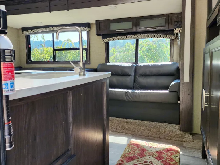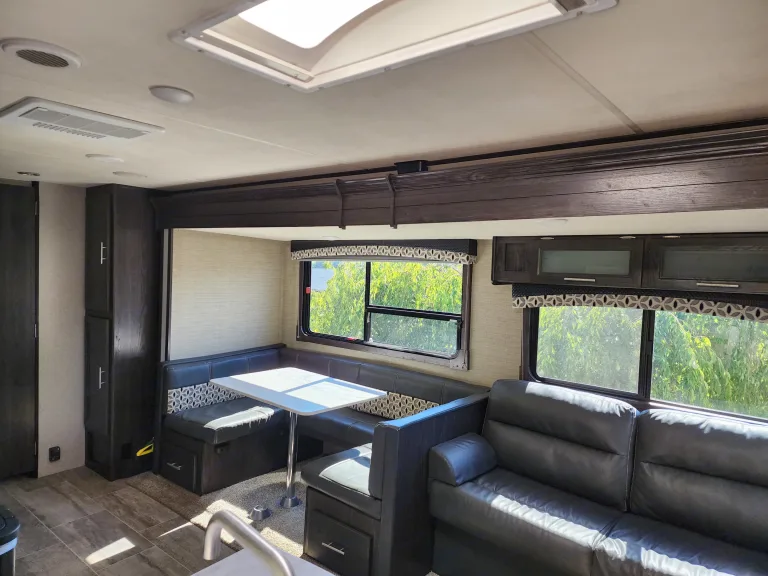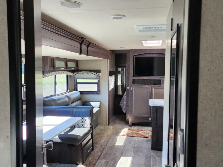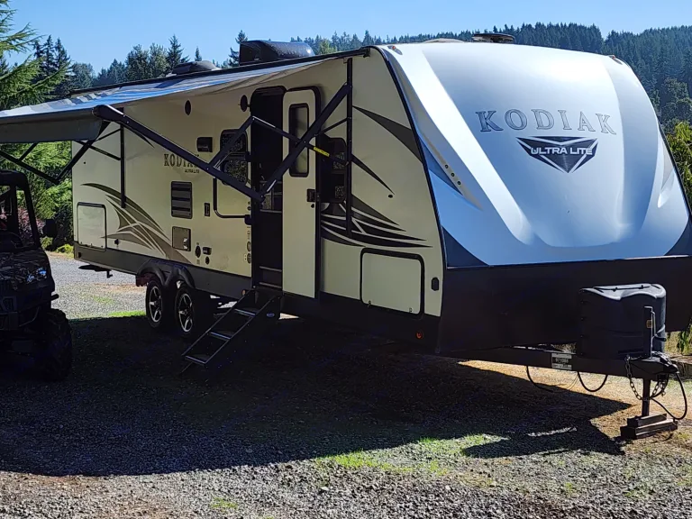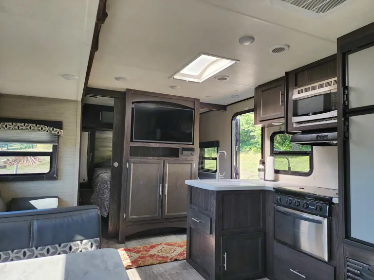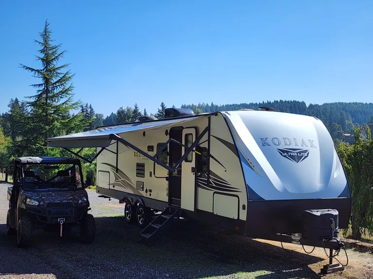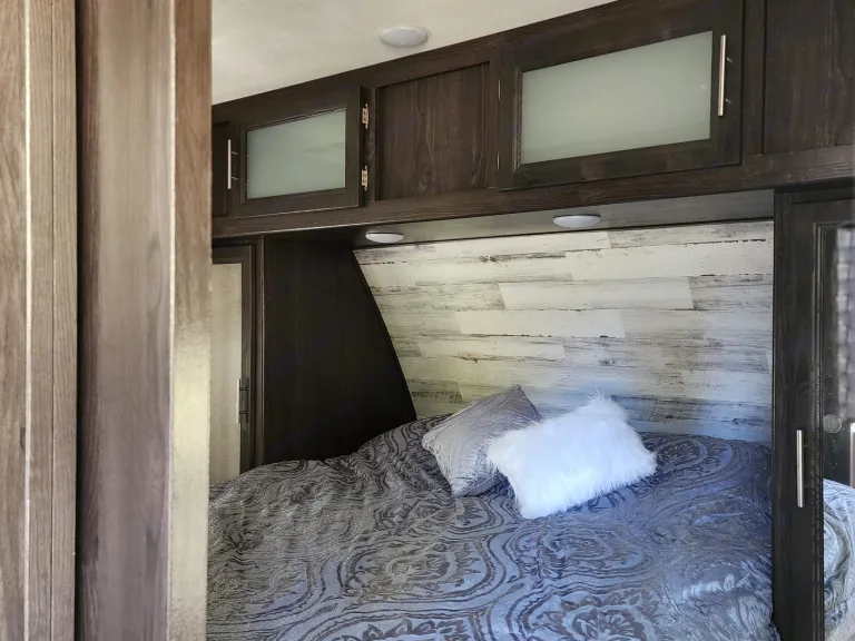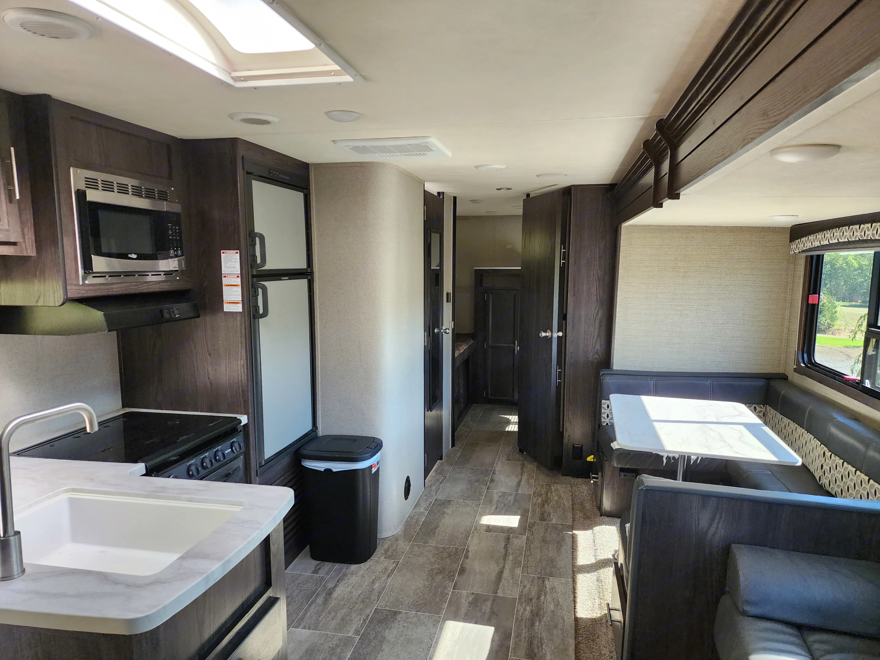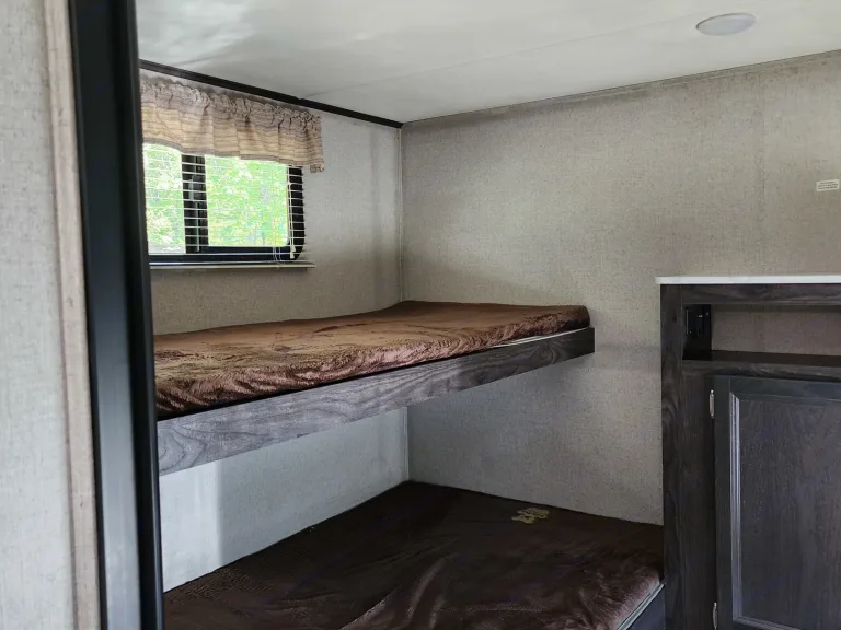 Nice family style light weight trailer. New smart tv, mattress and bathroom fan. This camper has a great layout with outdoor kitchen area.What's includedRental comes with utensils, pots and pans, coffee maker and one full tank of propane. sewer hose, fresh water hose and 30 amp power cord.RecommendationsPlease bring your own linens for all beds other than the main queen mattress.Other things to noteDogs are allowed but no cats.
