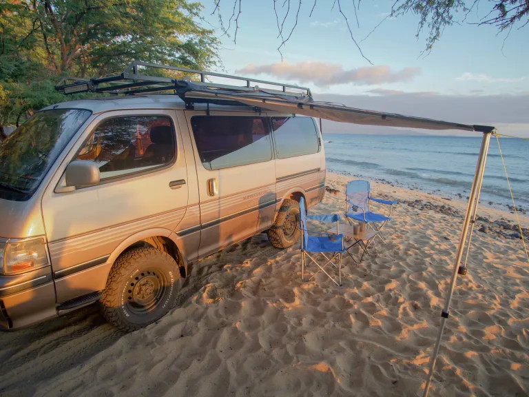 We explored Maui in the Hiace and it was perfect. The van is capable of going anywhere, has more power than a Westy, and is smaller and easier to get around in than the bigger vans. The layout of the van made camping more like glamping. There is no space wasted in this rig, and while its footprint on the road is small, it feels spacious to live in. Will considered all the details outfitting this rig from cooking and bathing, to lighting and privacy shades. All the gear was simple, fresh, convenient, and necessary. The only thing we were missing were our surf and paddle boards, which we rented in Lahaina. Will had a padded roof rack and straps for the boards making the rental process swift. We would rent this again, and again!