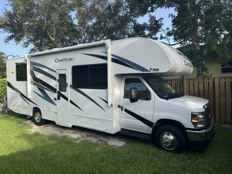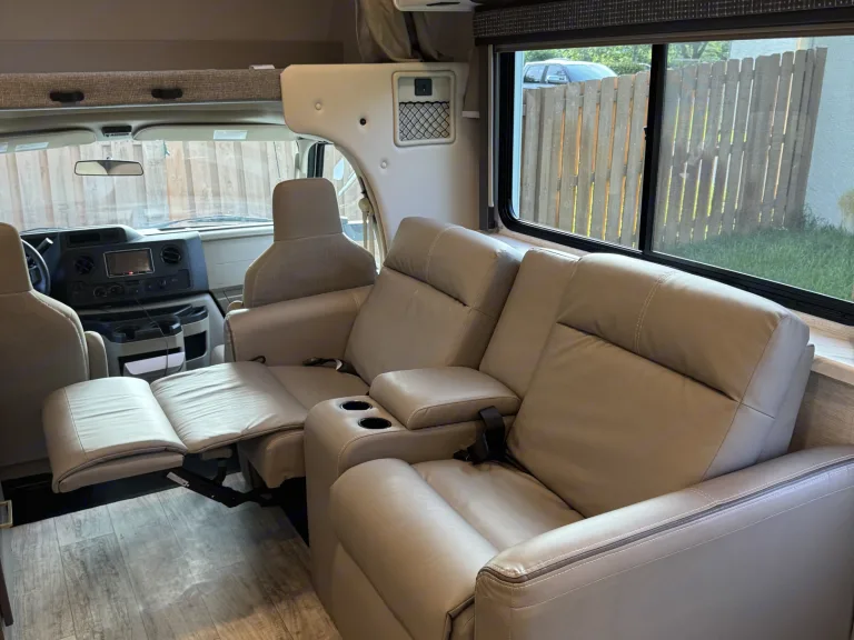 Pristine 2024 Thor Chateau with all the bells and whistles. Perfect for some small families or first time Rvers. Sleeping arrangement includes a queen size bed, full bed above cab, and a table that converts to a bed. Very comfortable recliners in front of the 30 inch TV! Slide out makes this RV feel extremely roomy. Other amenities include full size bathroom with sink, toilet and shower; booth table, microwave, oven, kitchen stove, bluetooth speakers, electric awning, generator, refrigerator, electric and propane water heater, stylish exterior, camping chairs, propane and more!!