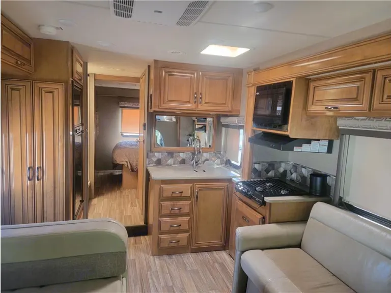The Quantum RQ29, a luxurious Class C motorhome is ideal for your next adventure. This model boasts a Ford E-450 chassis, a robust V10 engine, and a full-wall slide-out for extra space. Enjoy a queen bed, fully equipped kitchen, and a modern bathroom with shower. With ample storage, advanced entertainment systems, and comfortable seating, this RV ensures a comfortable and memorable travel experience for families or groups. Perfect for road trips and camping excursions!