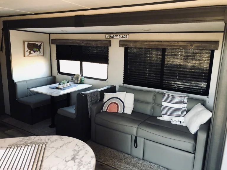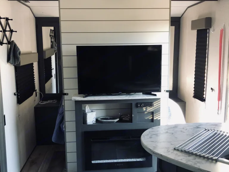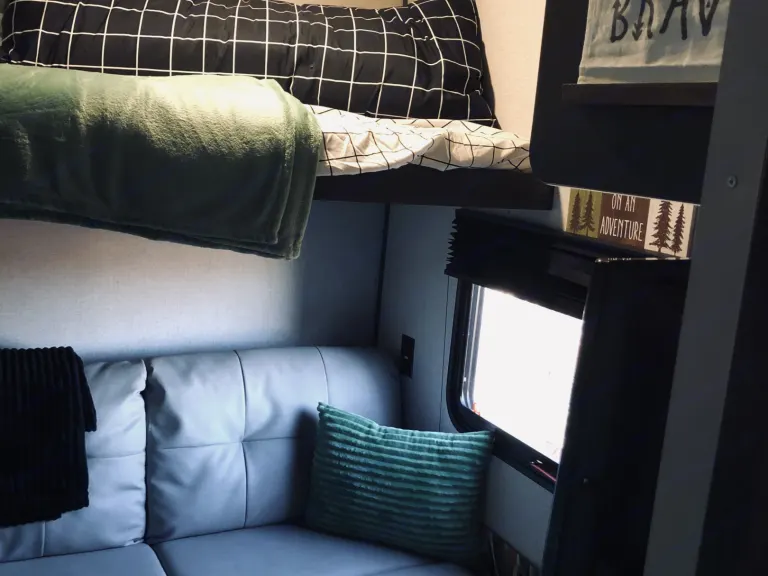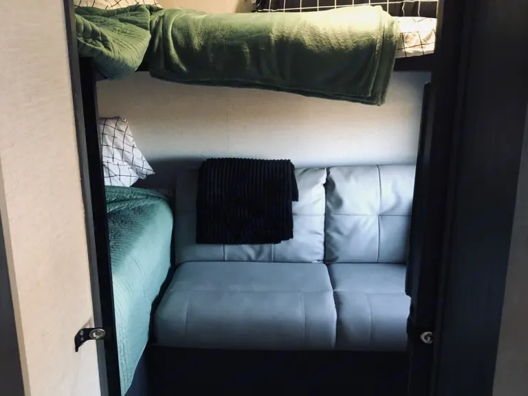 Awesome tow-behind travel trailer that sleeps 6 without needing to covert anything. Spacious living/dining area with full-size Samsung TV, fridge, stovetop and microwave. Bathroom includes a tub for the kiddos. Rear has 3 bunks plus a small sofa for watching TV (included with rental), with a sliding door for privacy. Front bedroom is a queen, with upgraded memory foam mattress. Outdoor kitchen includes mini fridge and stovetop.What's includedComes fully stocked with linens, dishes, basic toiletries, cleaning supplies, and other amenities (blow dryer, first aid kit, umbrellas, sunscreen, etc). Perfect for a family getaway!Camping chairs (x4), fans, camping table, canopy and other amenities are available upon request. RecommendationsMartin Creek Lake State Park, Caddo Lake State Park, and Tyler State Park are just a few of our favorite camping spots, and well within our delivery + setup area, if you need those services.Or, if you are traveling for business or events, there are lots of great local RV parks that we can recommend. Other things to notePets are welcome! We have bowls and leashes available if you need them.Absolutely no smoking in or near the travel trailer due to our family's allergies, please.Note: If you are picking up the trailer, we will need to verify that your lights and brakes work prior to you leaving the property. Thank you!