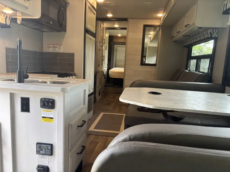 This Class C Motorhome HAS A Farmhouse-Style Decor With White Cabinets. IT'S Known FOR IT'S Blend OF Comfort AND Funtuality. IT Features TWO Slide Outs, Enhancing Interior Living Space, AND CAN Comfortably Sleep 6 People. IT HAS AN Over Head Bunk, Power Awning With LED Lights, AND A Fully Equipped Kitchen. Other Features ARE Exterior Speakers, Storage Compartments, AND A Rear View Camera.What's included• FULLY LOADED KITCHEN FOR COOKING AND DINING