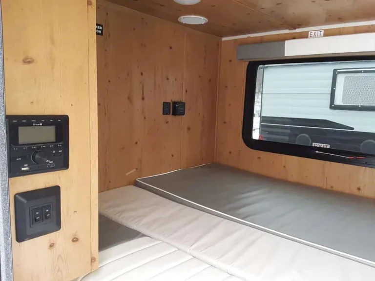 Great little camper and super easy to pull. Kitchen, AC, lights, etc all worked great. I’m 6-2 and bed was just big enough. Note: The trailer light plug is a 7 blade female, we bought an adapter for a flat 4 plug.