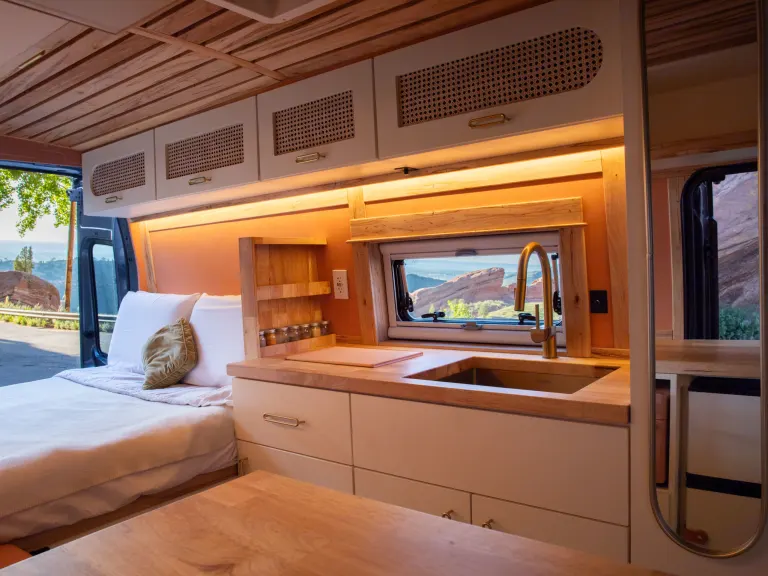 What an incredible rig we took Emilo to Roy on a Bouldering expedition, and it was an absolute dream to have all the amenities this van provides. Thanks, Emily!