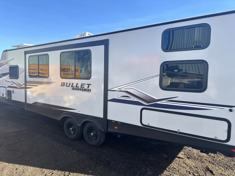 Le’ bullet is a brand new 2024 travel trailer from keystone, comes fully loaded with queen bed, two full size pull out beds and 2 bunk beds. Has full kitchen and bathroom with a Tankless water heater! No more running out of hot water! Also has a mini fridge outside along with a full awning and stereo setup outside. Be one of the first guest to stay at our awesome new trailer.What's includedRental comes with a 2 camping chairs, linens, blankets and pillows. Cookware and utensils. Along with plastic cups and plates, comes with an over size jenga, and a gas firepit incase there are fire bans! Also comes with an anti-sway receiver hitch at no extra cost!Other things to noteYou must dump if not dump fee will be charged and taken out of deposit. Dump fee 60$