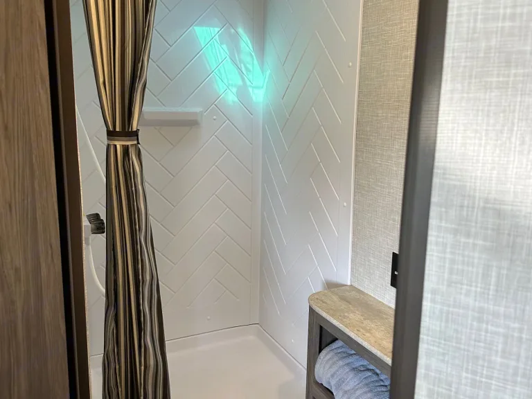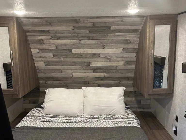 Looking for an unforgettable camping adventure? Look no further! The Zinger Lite travel trailer offers the ultimate family experience, comfortably accommodating up to nine people. The front bedroom features an RV queen bed and shirt closets on either side to keep your clothes organized. Your little ones or guests will be thrilled with the cozy bunk beds, perfect for unwinding after a long day of outdoor activities. Spend quality time with loved ones on the plush sofa or enjoy a game on the 38" booth dinette. For added privacy, the trailer also features a rear corner bath. With all these amenities, this travel trailer promises an unforgettable camping experience for the whole family.