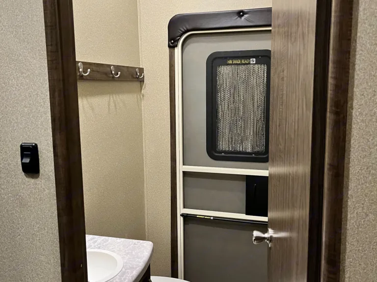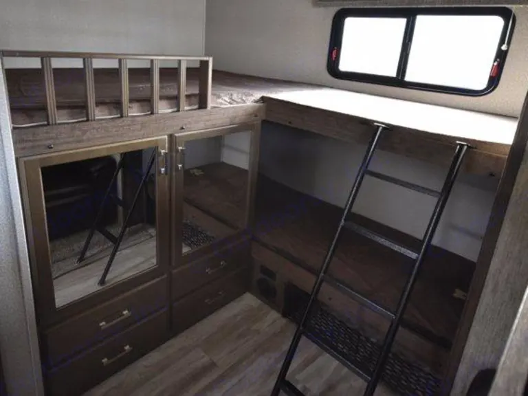 Bunkroom: Sleeps five comfortably, private half bath with outside access, wardrobe storage and cabinets.