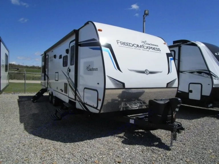 Hello, this is a Brand new 2022 Freedom Express 28.7SE trailer that is a luxury, value packed travel trailer that sleep 6-8. This unit has 1 Super-slide out, double over double bunk beds, 2 roof mounted A/C units, kitchen with plenty of cabinet space, 18' power awning. This camper has plenty of space for a big family to enjoy a great weekend or longer getaway.We only deliver this trailer- We will make arrangements with you to deliver the unit to the camp ground you are going to. We will then set it up and get all the appliances on and operating and then we will go over the unit (on how to use the trailer) with you.Delivery is $3.00 per mile (up to 150 miles) - only charged one-way (not both ways). Both the delivery and pickup must be done Monday - Friday. We do not pickup or delivery on Saturdays or Sundays unless we are able to make arrangements for someone to pick it up.What's includedSheets and cover for the Queen bed, 6 bath towels, basic pot and pan set, plates, cups, silverware and cooking utensils. Other things to note-At NO time should anyone be on the roof