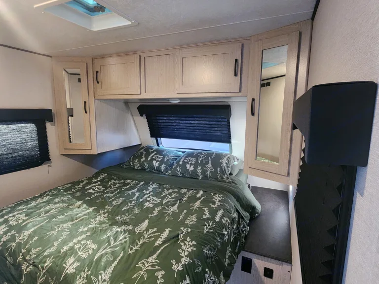The trailer we rented from Brian Mcdonald was beautiful. It was laid out so nicely and gave us lots of room to be in it for cooking, games, sleeping and some times just hanging out together with the family. The weather while we were away was very nice and warm out so we tried to be outside as much as possible. After swimming we were able to shower off our grandsons using the outside rear shower. This unit had amazing beds and the main front one was a queen size and again the bedroom was laid out in a way that made moving around easy and the doorway closed to provide great privacy for us grandparents. It was lighter than the one we rented a few weeks prior and pulled very nicely with the Blue Oz anti-sway bars. Brian and his wife had gift packages on the bed so when we arrived at the campground it was like Christmas with lots of small items like puzzles, campfire color, teas, (see pics). Brian gave us a good review of the trailer upon arriving and hooking up. I would always suggest watching a Youtube video of the sway bars and hooking up whatever manufacturer. All the onboard tanks had been sanitized even the black tank. Everything worked great and if I was to rent again it would be this trailer unit from Brian.