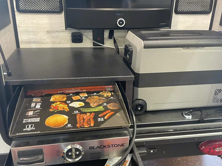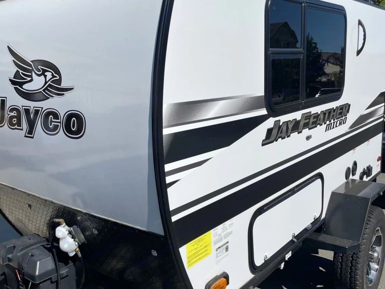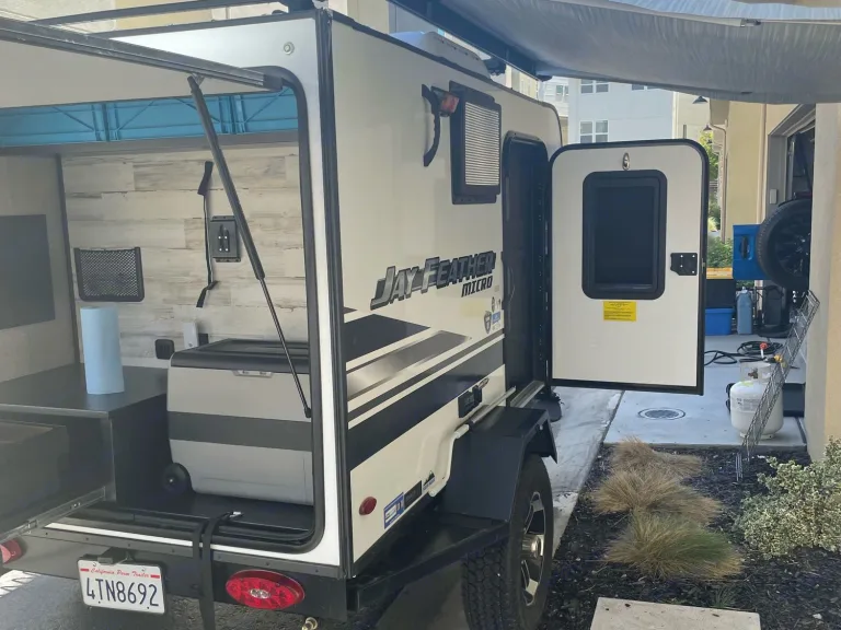 15" Off-Road TiresInstead of worrying about a difficult towing process, ease your mind with this lightweight Jay Feather Micro travel trailer! This trailer is the lightest of the light since it is tailored to the 2,000 pound tow vehicle, but it still comes with everything you need to have fun, Bluetooth speaker and retractable futon sofa plus outdoors you will have counter space to prepare meals, a 17" Blackstone griddle and 12V/120V Dometic cooler. You will also find some personal gear inside the wardrobe and on the overhead shelf, plus the power roof vent will allow hot air to escape from the interior.Jay Feather is fully stocked with all essentials, dishes and cookware. I also have a mobile sink and camping tent (sleeps 5) in case you choose to bring the kids.Video walkthrough:https://youtu.be/oljqEgIozlmWhat's includedSolar hookup available if off grid camping