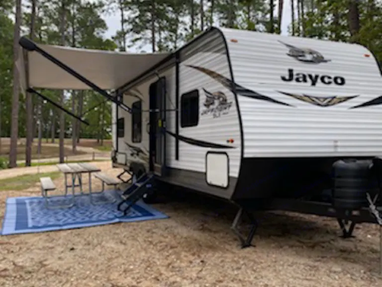 This cozy Jay Flight is just like a home away from home that the entire family can enjoy!It features a queen sized bed with a Serta mattress topper in the “master” bedroom. It also features a set of full sized bunk beds with privacy curtains. Bedding will be provided for all beds, including linens and pillows for the convertible couch and dinette beds.This camper also features a large refrigerator/freezer that is perfect for tailgating, a propane stove/oven, a two-bowl sink, indoor and outdoor showers, and a bathtub to accommodate an adventure with little ones!This camper can comfortably accommodate 6 adults, but up to 10 people if you’d like! There’s plenty of space for week-long trips, and even room for your kiddos to bring friends! You’re welcome to bring along your furry-family as well!We want your experience to be as comfortable as possible! This camper features an electric awning with LED lights and A large 9x12 camping mat will also be provided for your use! We are also delivery and pick-up friendly!We’re excited to share our second home with you! See you soon!What's includedFresh linens, stainless steel cookware and utensils, large camping mat, K-Cup style coffee makerRecommendationsOur renter have enjoyed trips at: