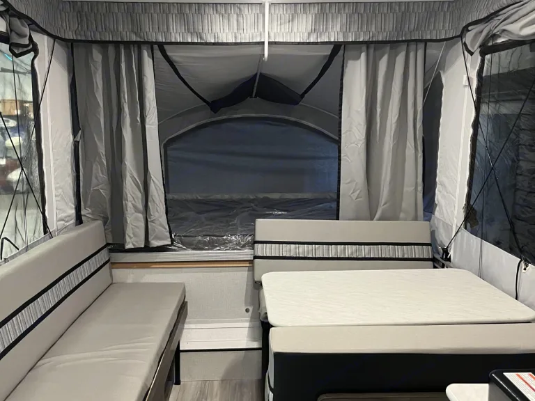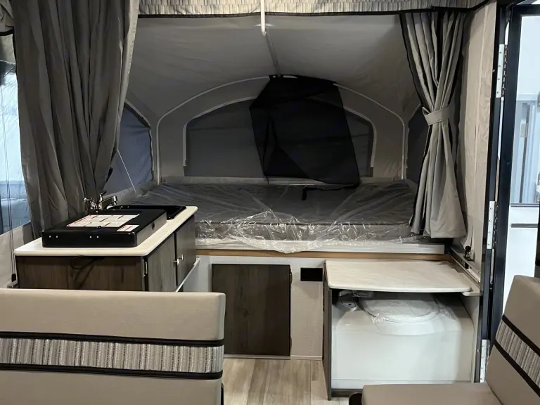 This is a 2022 Coachmen - Clipper Sport, family unit. We purchased it fall 2023.It is under 2000 lbs; meaning a van or smaller suv can tow it. 7 pin required.Included inside: