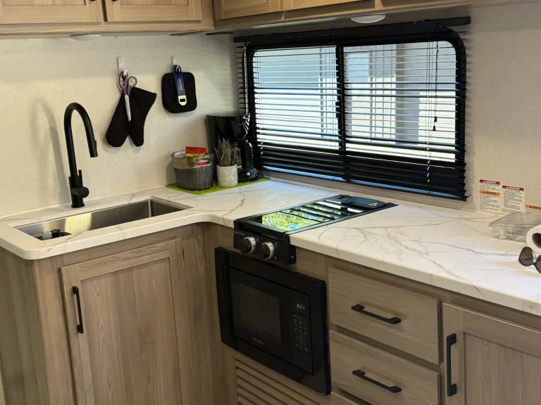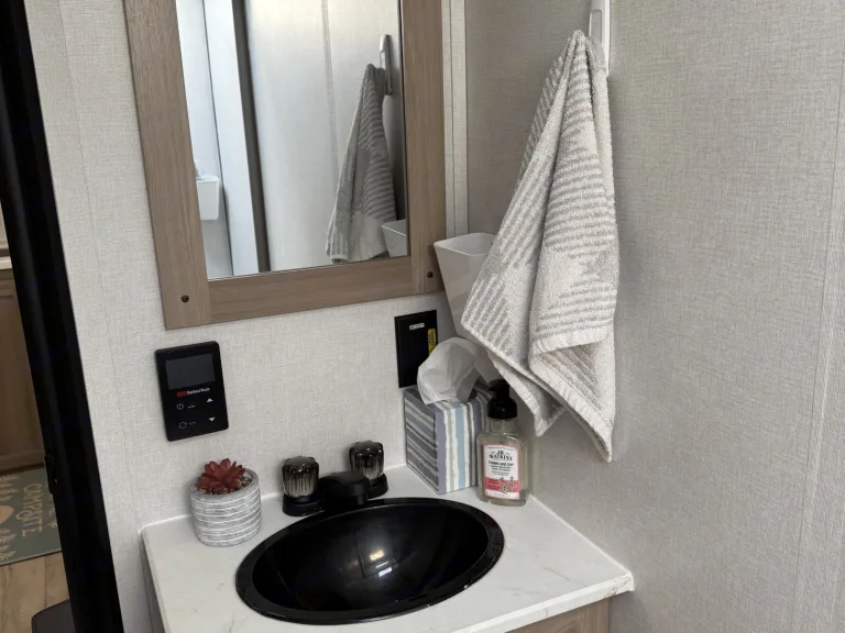 -Safety features such as a breakaway switch, carbon monoxide detector, smoke detector, propane gas leak detector, & fire extinguisherExtras Included
