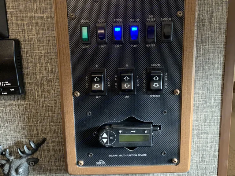 Take full advantage of enjoying the outdoors sitting in provided lawn chairs under the electric awning with LED lights, Listen to your favorite music on the bluetooth outdoor speakers. Most important is the outdoor kitchen with 2 burner propane Stovetop with Cast Iron Skillet, Sink, and Refrigerator. Create lasting memories for your family with our “Cougar