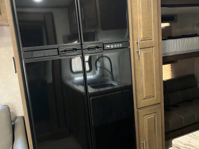 Special Rates IF Staying AT Lazy E Arena (message me for details).Take a trip with “Harvey the RV”! Whether you are a first-time glamper or seasoned professional, Harvey will take great care of you! Harvey loves families and has seat belts for up to 8 people and includes 6 separate sleeping areas (bedroom w/ king bed, bunk beds, drop down bed, and the couch & booth can convert to beds). Harvey has a slide on each side and once opened adds a lot of space. Harvey is all about comfort. It’s 2 A/C’s keep things plenty cool and the 4 TV’s (3 inside & 1 outside) provides plenty of entertainment options. These items can be used while driving thanks to Harvey’s gas generator. Harvey’s kitchen area includes a double door fridge, deep pantry, full-size microwave, 3-burner gas stove and an oven. Like to spend time outdoors? Harvey has your back! Harvey will provide 8 fold out chairs, propane fire pit (with an extra propane tank), basket with outdoor activity items and a fold out table to hold Harvey’s 22” Blackstone grill. Harvey has plenty of outdoor storage if you want to bring your fishing gear or golf clubs. Want to bring a vehicle to explore your vacation area? Harvey has an optional tow dolly that can tow up to 4,500 lbs (vehicle Must be FWD) (additional fee).