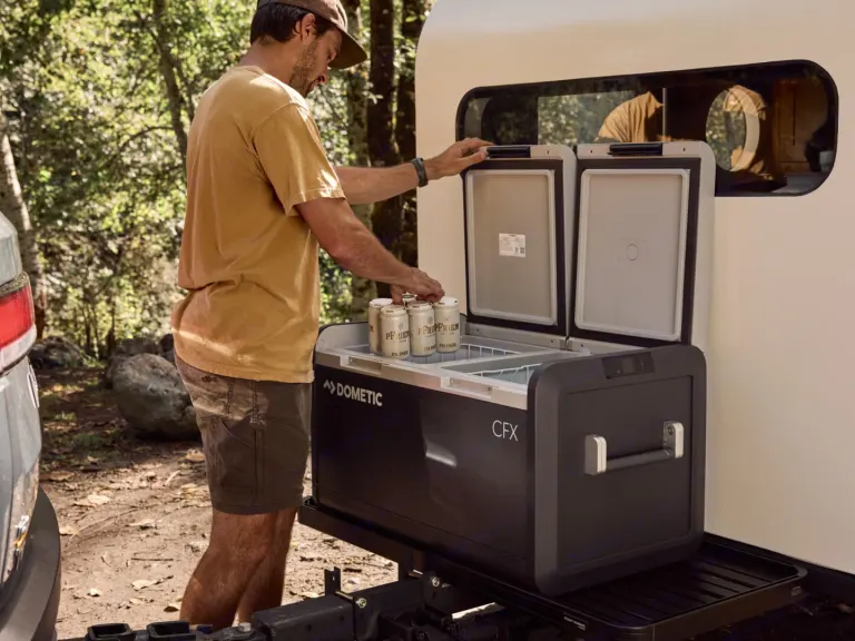 A rugged, portable fridge-freezer designed for serious outdoor use—from van life and RV adventures to weekend camping trips. Holds up to 67 cans (45 L capacity) without the need for ice