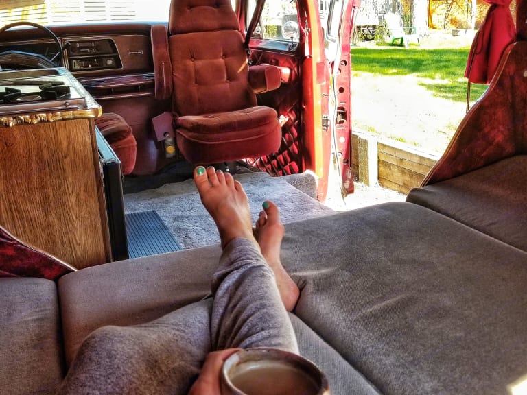 Hi there! This is the perfect camper van for your next getaway adventure. It it extremely well maintained and easy to drive at only 17 ft.Please note* Bookings for trips made 12+ days in advance, must be 10+ days in length.Class B RVs are great adventure vehicles! You get to spend more time enjoying sights and activities than worrying about setting up a tent or finding a large parking spot for an RV. You can park this van at any little hidden gem for a quick snack, a hike, a quick fishing stop, or a snooze. The dark curtains run along all windows and insures extreme stealthiness for city camping and long sleep-ins.The van comes fully equipped with everything you need for your adventure - 2 camping chairs, a small outdoor table, first aid kit, full cookware set, and a French press.The van has forced-air intake which creates a nice breeze inside and can also be used for extra air flow while in motion. An additional fan that can sit either in the front to keep you cool while you're cruisin or in the back for a nice sleep. The van is very insulated and has a furnace making it nice and cozy and great for winter trips. The insulation also keeps the van cool in the hot summer mornings.23 liters of fresh water included.*Propane for furnace & stove must be full at drop off.*Gas must be left at least at the same level from the beginning of your trip.*Don’t have time to fill gas/ propane? Each will be +$33 service fee plus the total cost to refill.*Bedding and towels $30 for the full duration of your trip.There are 3 DC outlets and an an AC converter. An rv battery will power the living area when the van isn't running. It is very easy to use everything inside and out on this unit - Perfect for first-time #vanlifers!Rhonda has been very well maintained throughout the years. She’s a retro gal - has been featured in a music videos and photo shoots. She turns heads and holds hearts. She’s about the journey - not about getting from point A to B in a big hurry.A cooler is available for rent if you need extra space for fridge items and drinks.Pick up is at 3 pm and drop off at 11 am - this may be negotiated depending on other bookings and a $50 early pick up fee may be applied. There is a $50 late fee if returned after agreed upon time. If the van is returned 2 hours or more after the drop off time, there will be an additional day charged. 3 Hours later will result in a $299 late fee if it affects the next renter’s booking.* Does a portable wood-burning sauna sound cool to you? Picture yourself resting under the moonlight after a sweet sauna session. Or to jumping into a river or lake after a good steam. It’s possible! We have a partnership with Thermaculture. ca to provide you with a sauna at discounted rates. An awesome local business helping create healthy communities- Check them out!**Please don't hesitate to ask any questions. I have overnight backcountry camping gear I can also rent out. I know the area between Alberta and the West Coast quite well and can offer advice on hikes and places to visit.Other things to notePropane must be filled at the end of use. A $40 fee is applied if not complete.