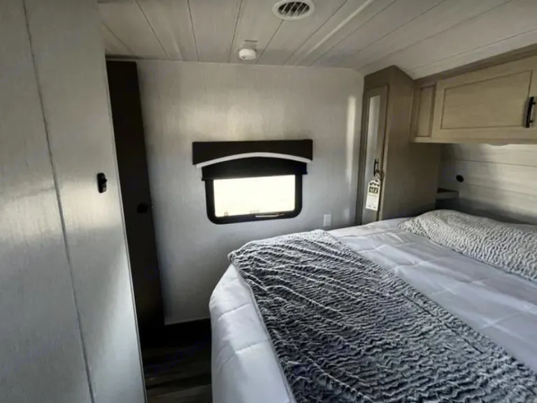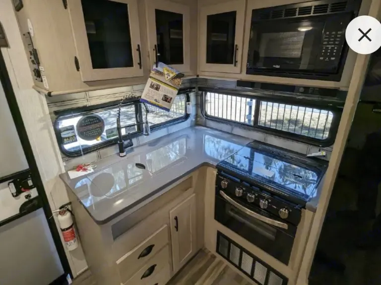 Brand new Evo comes fully loaded with TV , spacious shower and bathroom, outdoor grill/griddle, outdoor fridge, outdoor Bluetooth speakers ,extra large canopy for shade, luxury kitchen with plenty of storage for food and drink, private master bedroom with Queen size bed , linens will be provided, massive windows provide natural lighting throughout the trailer, fire place for ambiance or heat, solar panels equipped to power all but the fridge ,AC and microwave, this is the perfect camper for your friends and family to get away for the weekend, escape reality and just relax. RV rental, delivery and setup are available, Lock box combo will be given on day of arrival. If camper is returned in a condition that results in excessive cleaning, additional cleaning fees will be appliedWhat's included• shower towels