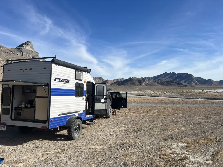 Experience the ultimate in compact travel with the Sunset RV Sunray 129. This versatile travel trailer is designed for adventurers who crave both comfort and mobility. The Sunray 129 boasts a sleek and efficient design, featuring a cozy sleeping area, a fully-equipped kitchenette, and ample storage space. It comes equipped with a 100W solar panel, a convenient toilet, and a 6” lift for better ground clearance. Stabilizers are included to ensure a stable and secure setup at your campsite. Perfect for weekend getaways or cross-country journeys, this travel trailer ensures you have all the essentials while enjoying the freedom of the open road. Easy to tow and set up, the Sunray 129 is your ideal companion for creating unforgettable memories on your next RV adventure.What's includedWe do our best to make you feel at home! The RV is stocked with essentials like coffee, tea, sugar, spices, cooking oil, hand towels, paper towels, and soap. For your convenience, we also provide leveling blocks, wheel chocks, a septic line, water hose, and electric cord. Enjoy cozy nights with included bedding, blankets, and pillows. The kitchen is fully equipped with cookware and utensils, and towing equipment is also provided to make setup easy.RecommendationsLincoln Creek dispersed camping so probably one of my favorite campsite with spectacular views with easy access to Aspen on one side and twin lakes on the other, as well penny hot springs is not far away.If you are looking for something more organized. You can rent a campsite at valley view hot spring for about $80 which will include breakfast and dinner plus your soak and amazing views of the San Juan mountains.Other things to notePets allowedNo smokingRenters must be over 25Easy to moderate off road trails only