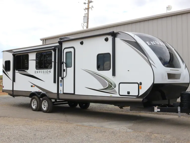 Like new 2020 Gulf Stream Envision. Featuring 2 slide outs, lots of light and windows, pull out couch, two heated massage reclining chairs, electric fireplace, and a Full Kitchen(with island), this trailer is perfect for your getaway with lots of room to entertain! Relax in your king size bed and enjoy your morning coffee in front of the fireplace. What else do you need?! This trailer is a dream! What's included4 camping chairs, Coffee Pot, pots & pans, other various cookware, 4 sets plastic reusable dinnerware, sheets for beds, some cleaning supplies, and outdoor Rug for below the door included. *Please note* You will need to bring your own pillows, towels, and any extra blankets.Other things to notePets are welcome, but must be disclosed if you are bringing them. We do not allow smoking in the trailer. NO Festivals allowed. Our family loves to use the trailer and hope you do too! Please be respectful and take care of it as if it was yours. :)