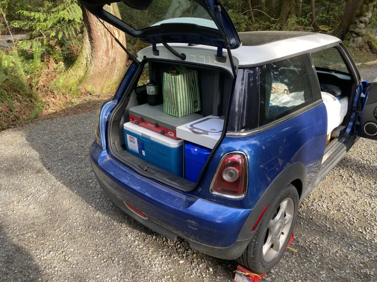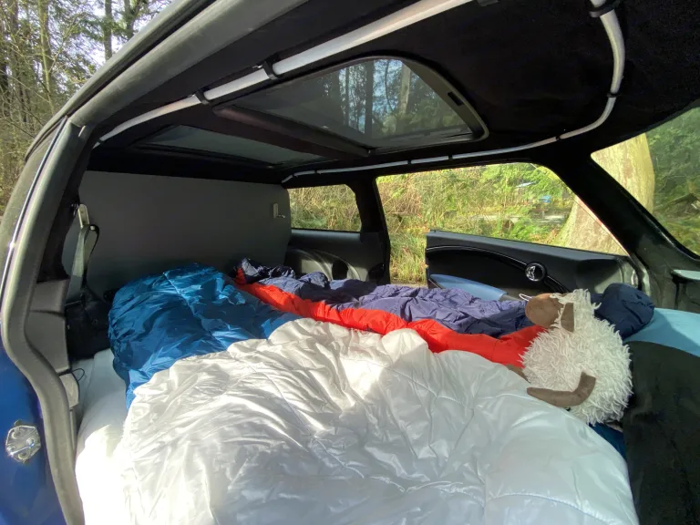 Mick the Mini Trailer started his life as an average 2007 Mini Cooper Car, but has since been converted to a one of a kind "teardrop style" camping trailer that is perfect for your next adventure!Inside, Mick is equipped with a full size bed, underbed storage compartments, storage hooks and shelves, dimmable tube lighting, double sunroofs, and a control panel.Opening the back, you will find a cooler and two burner stove, as well as a pull out sink with a 19L refillable water supply. The kitchen will come stocked with all the essential supplies.Mick is powered by a Explorer 240 Jackery Power Station, giving you plenty of battery life, and making it possible to recharge while you drive.Weighing in at only 650kg (1400Lbs), almost any vehicle can tow this little trailer, making it perfect for anyone looking to have a unique exciting camping experience. Come try it out!What's included-2 pillows, blanket, and fresh sheets