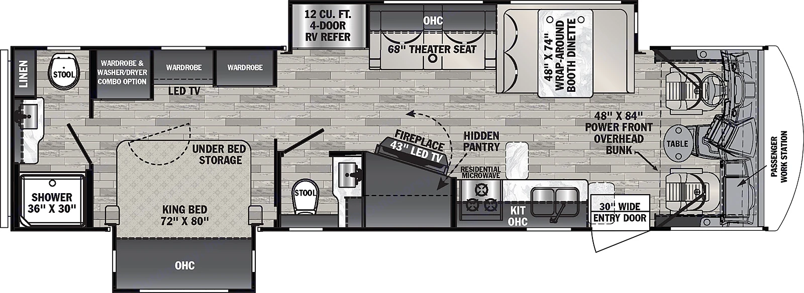 Spacious RV rental interior with integrated washer, TV, and closet for convenience on the road.. FR3 FR3 Motorhome 2023